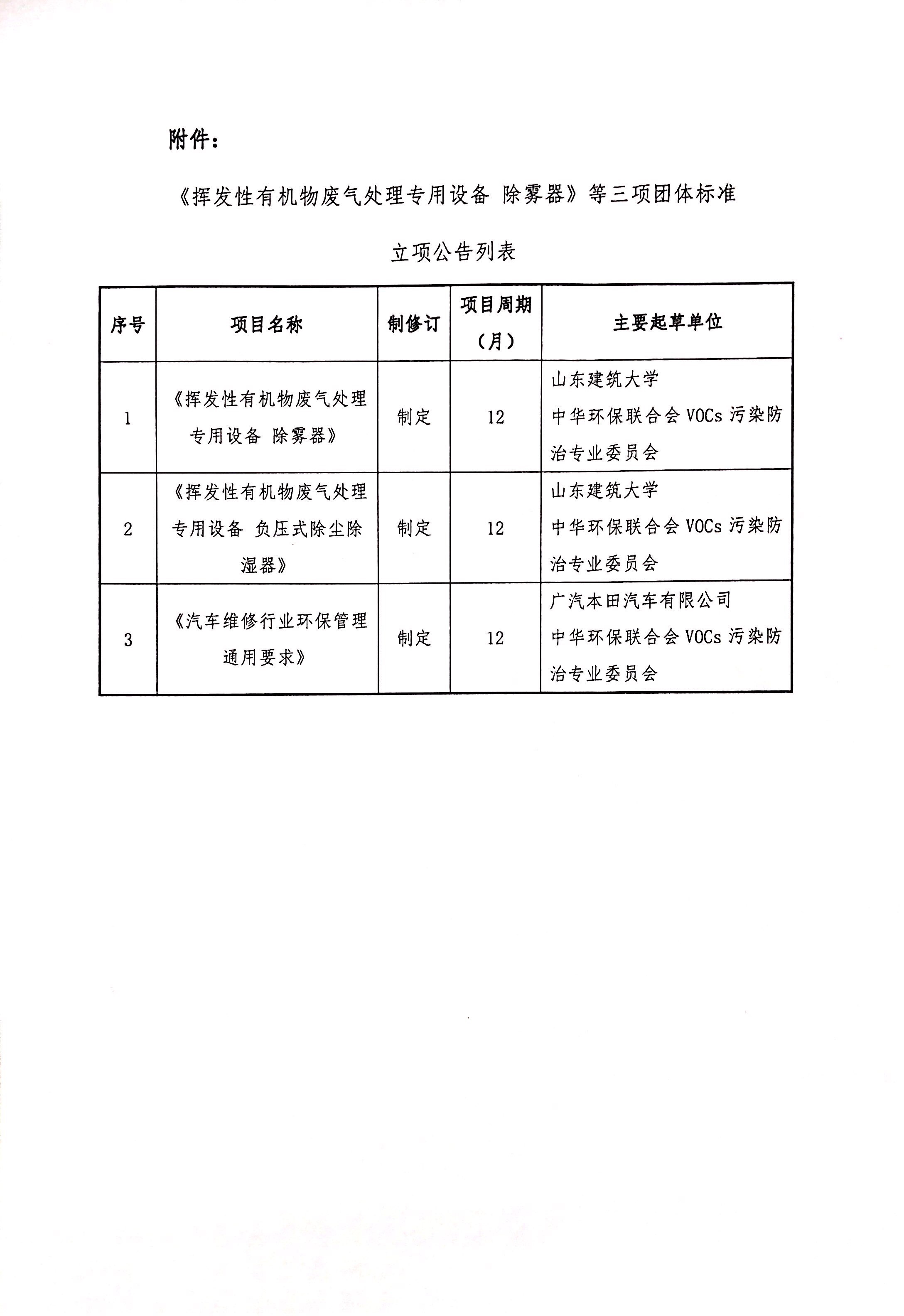 中华环保联合会关于《挥发性有机物废气处理专用设备 除雾器》 《汽车维修行业环保管理通用要求》等三项团体标准立项的公告