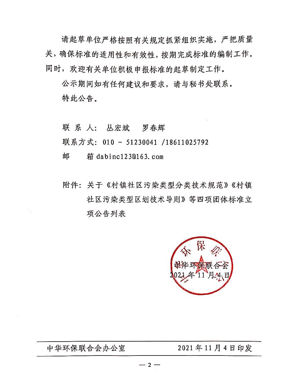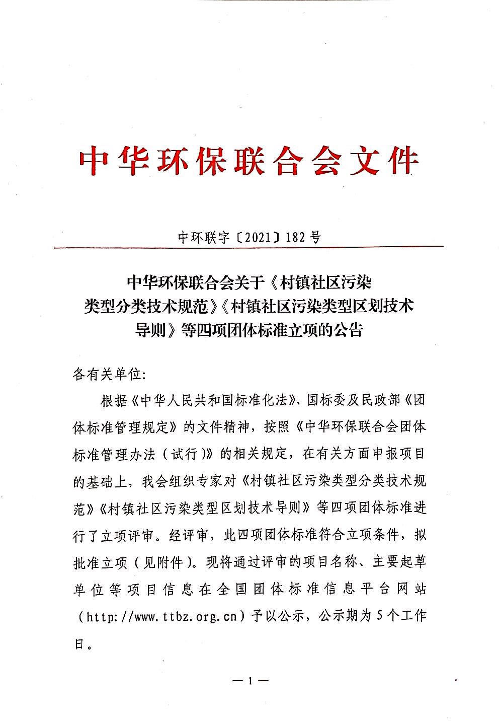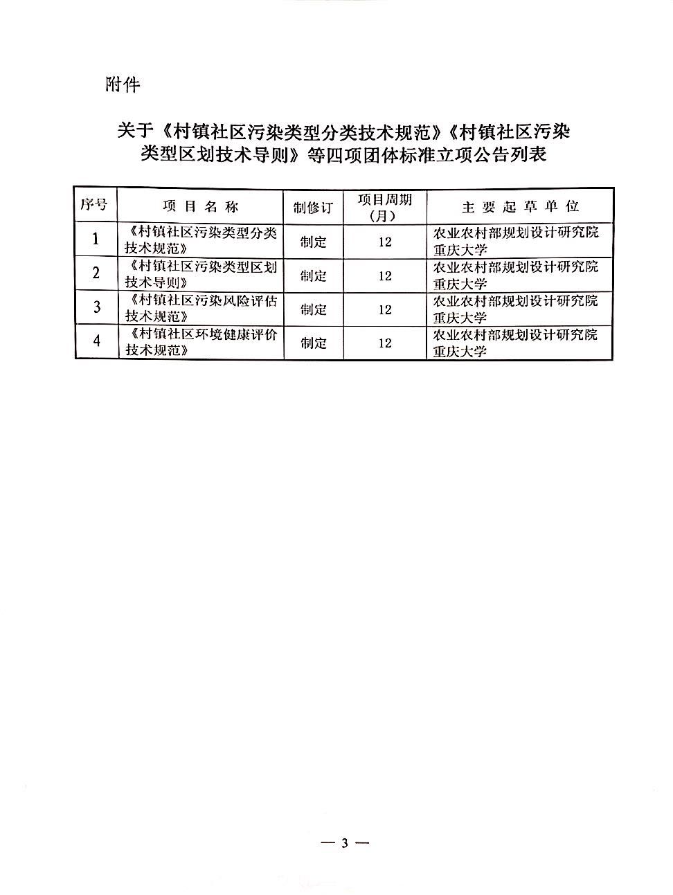 关于《村镇社区污染类型分类技术规范》《村镇社区污染类型区划技术导则》等四项团体标准立项的公告