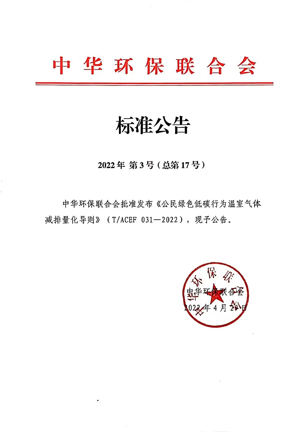 为测算评估公民绿色行为的碳减排量,激励公众践行绿色行为,推动绿色生活方式广泛形成和贡献“双碳”目标,团体标准T/ACEF 031-2022《公民绿色低碳行为温室气体减排量化导则》于2022年4月29日正式发布,为衡量消费领域的碳减排量贡献一把“标尺”。