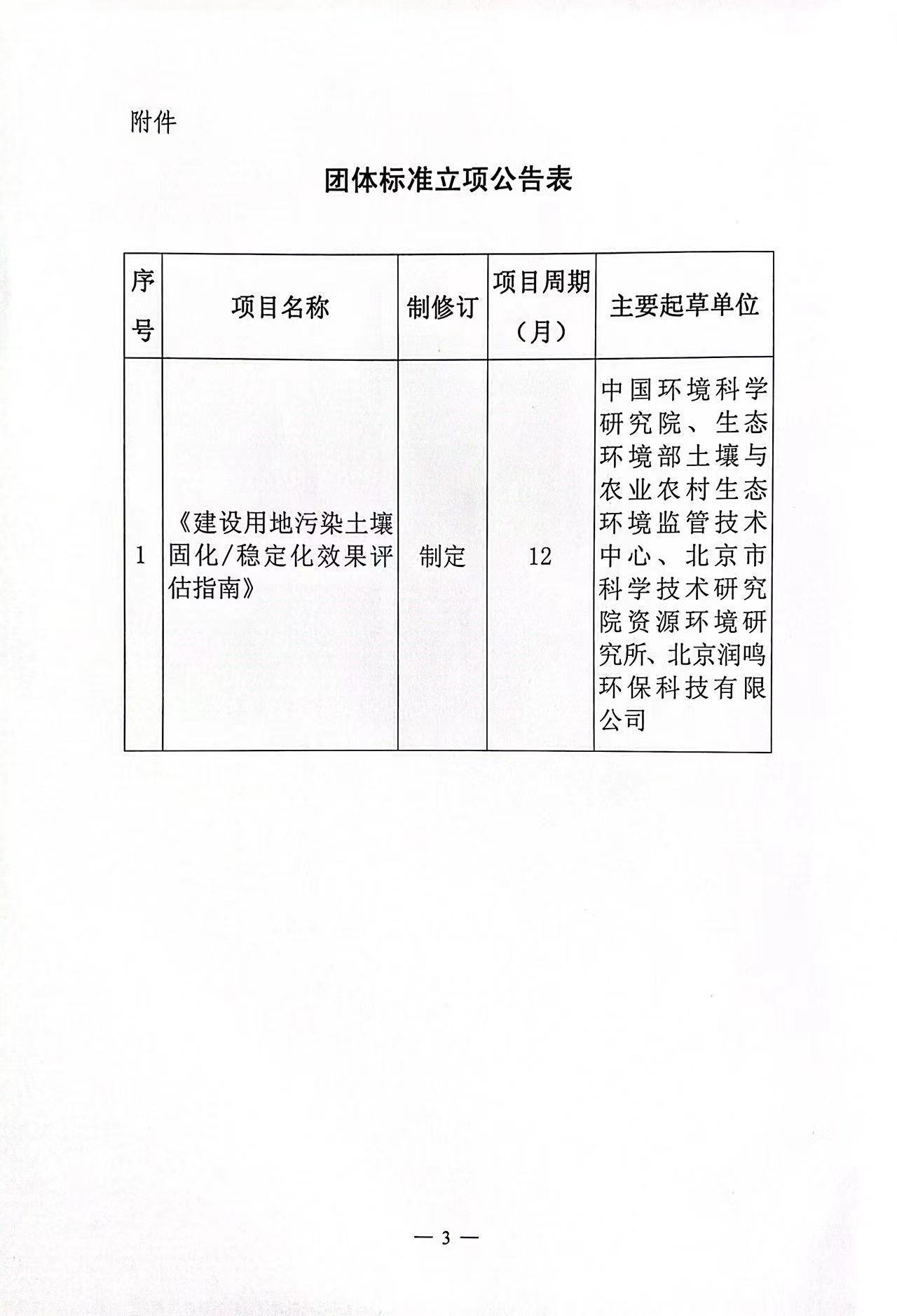 关于《建设用地污染土壤固化/稳定化效果评估指南》团体标准立项的公告