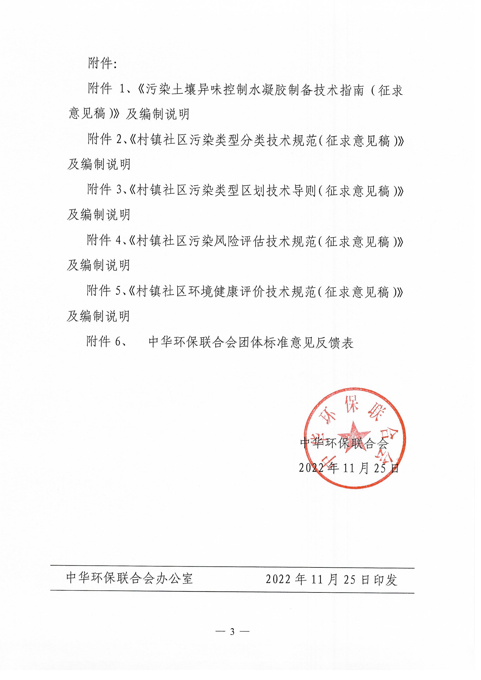 中华环保联合会关于《污染土壤异味控制水凝胶制备技术指南》《村镇社区污染类型分类技术规范》等五项团体标准征求意见的函