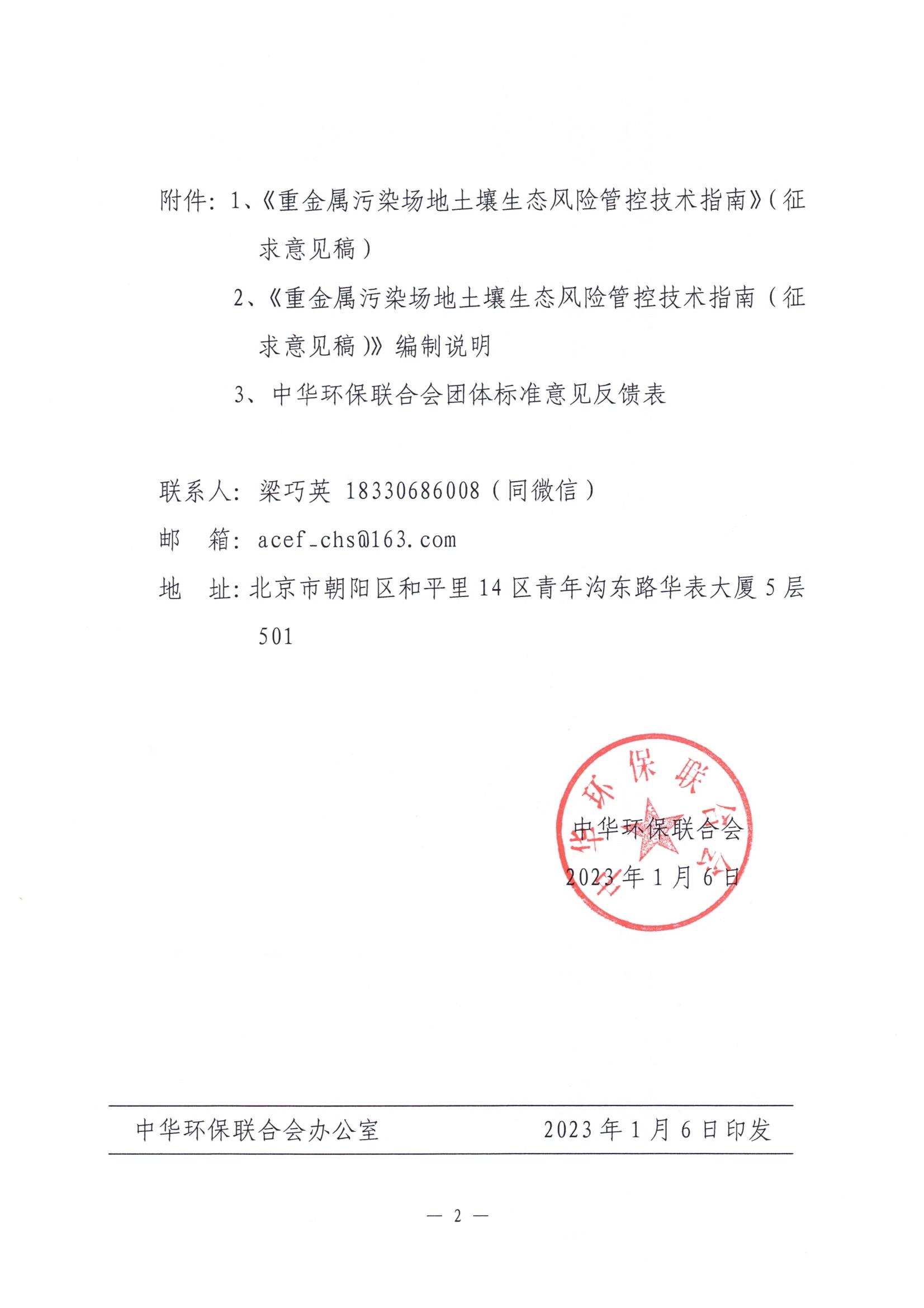 关于《重金属污染场地土壤生态风险管控技术指南》团体标准征求意见的函