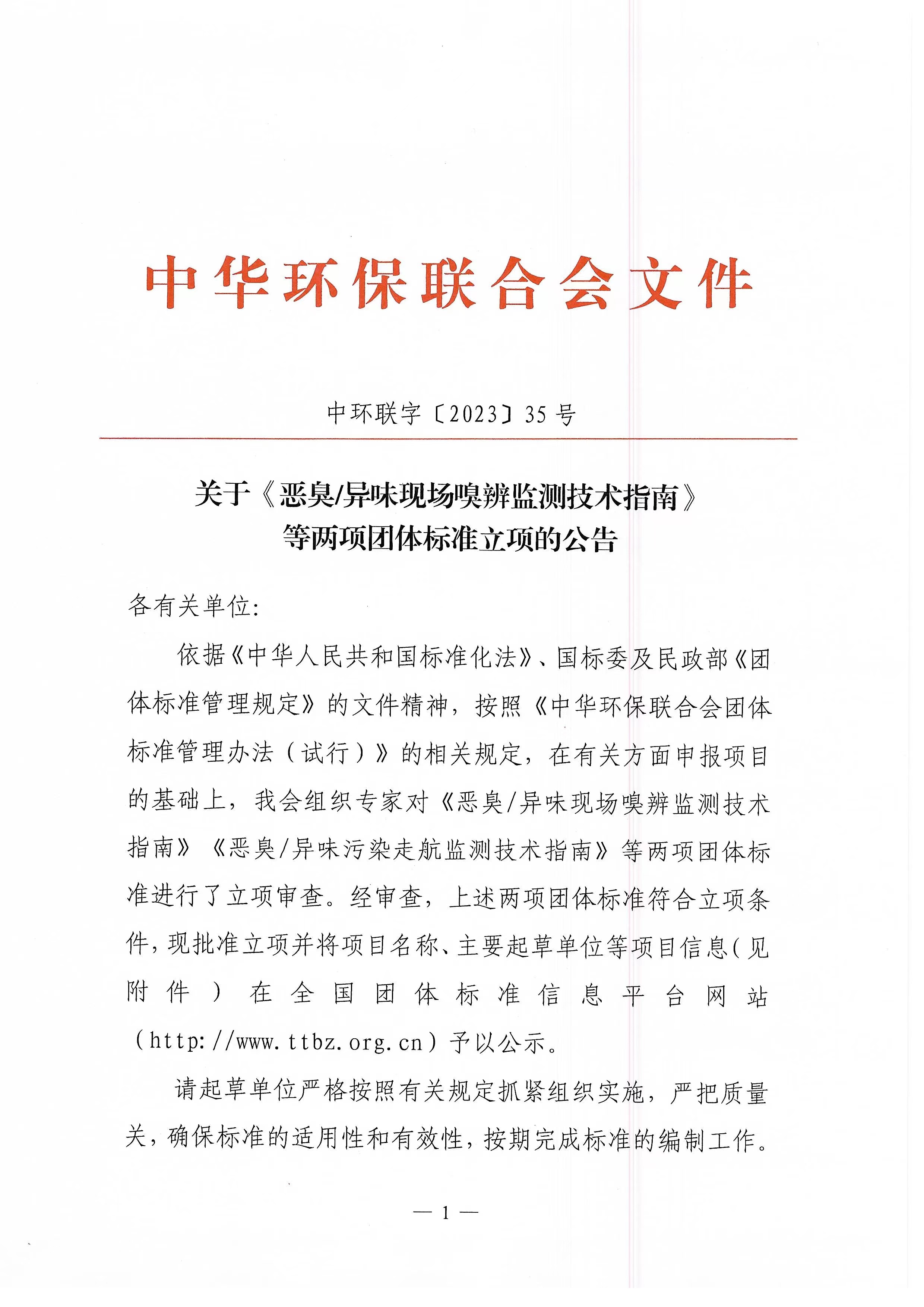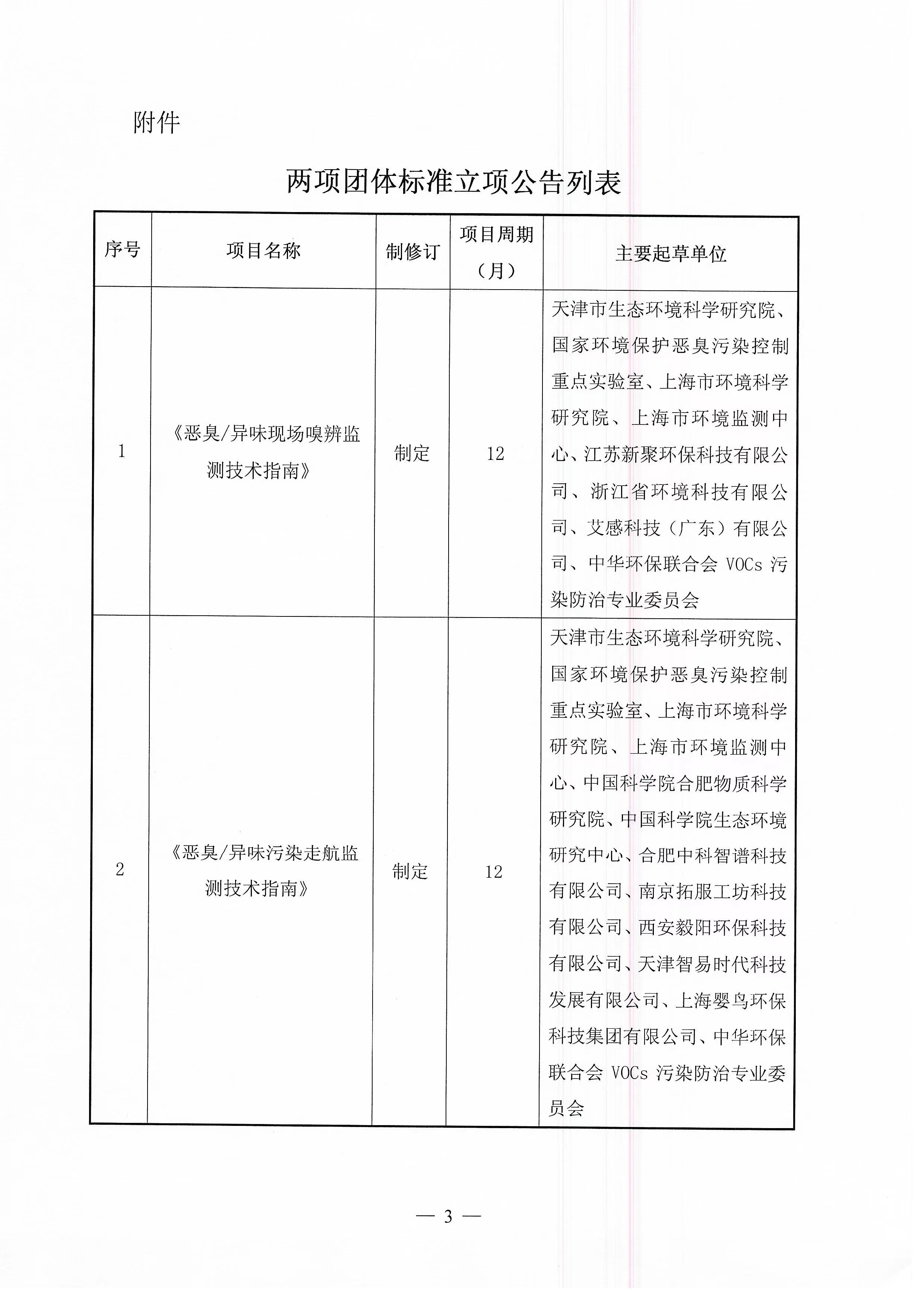 关于《恶臭/异味现场嗅辨监测技术指南》等两项团体标准立项的公告