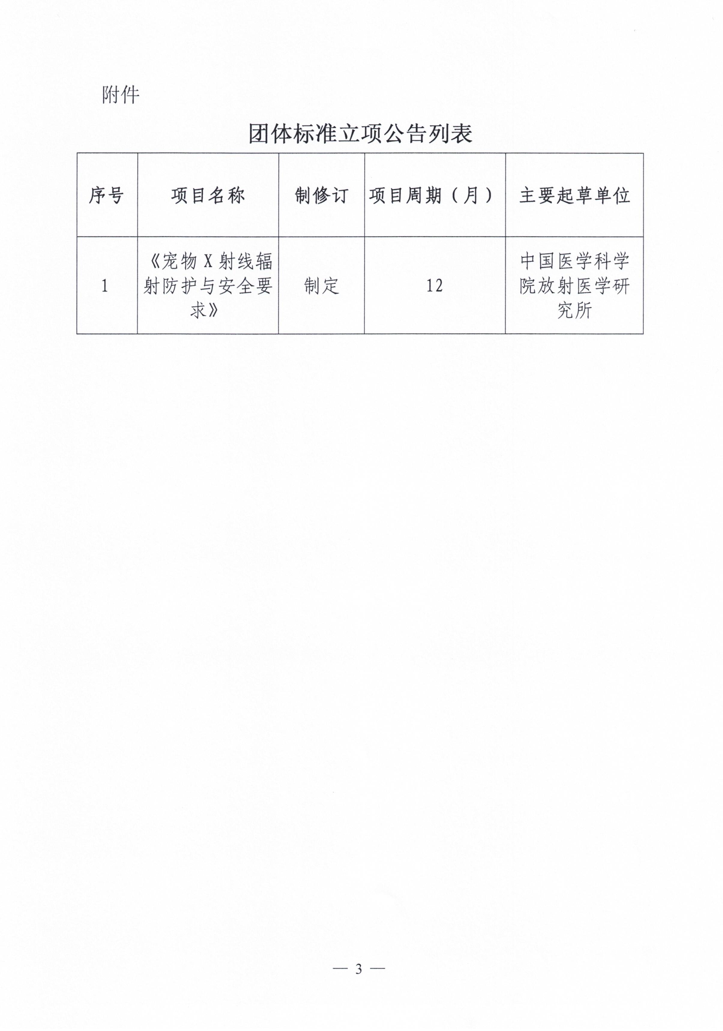 关于《宠物X射线辐射防护与安全要求》团体标准的立项公告