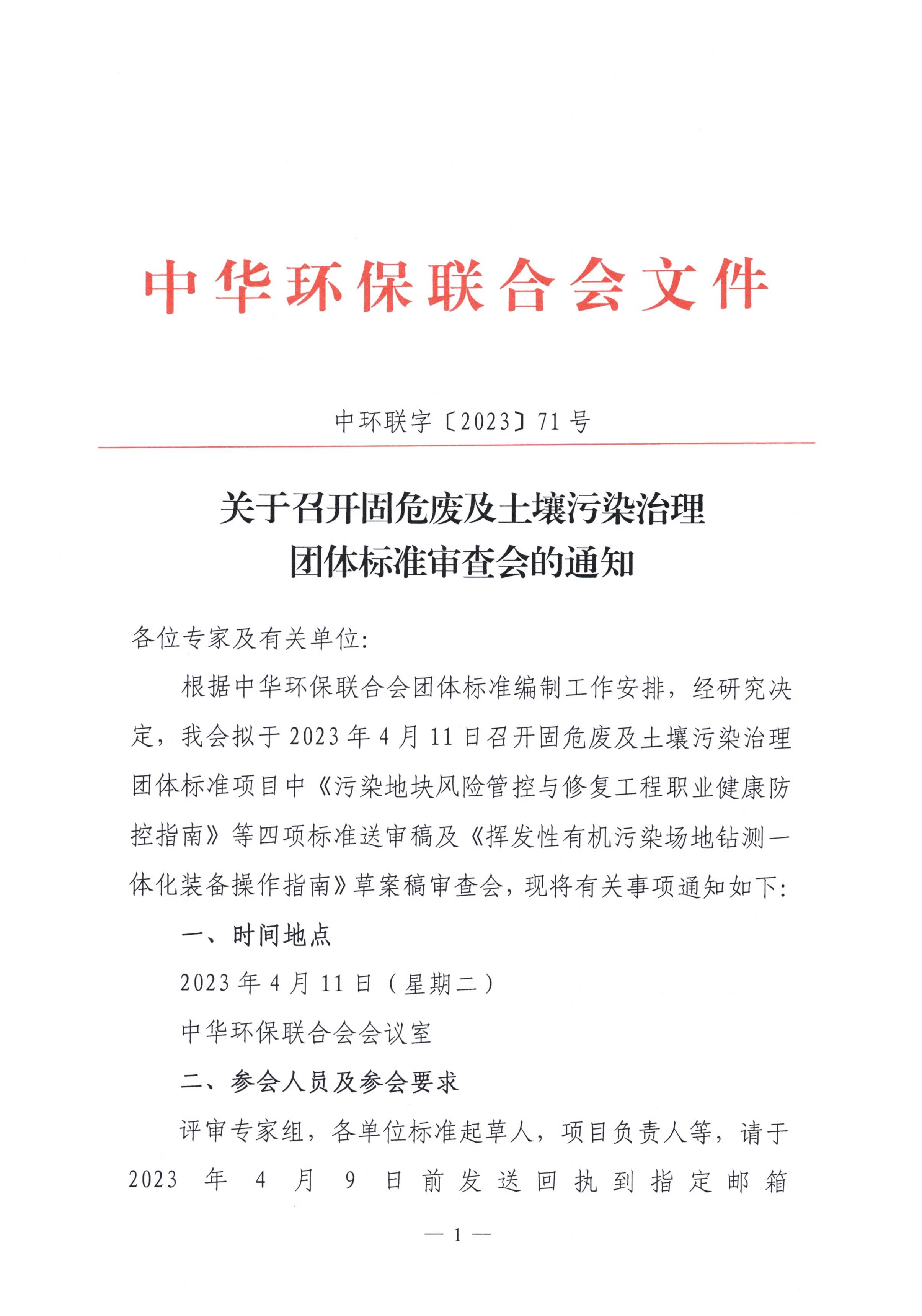关于召开固危废及土壤污染治理团体标准审查会的通知