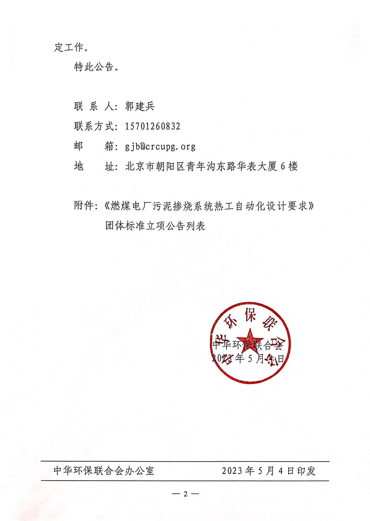 关于《燃煤电厂污泥掺烧系统热工自动化设计要求》团体标准立项的公告