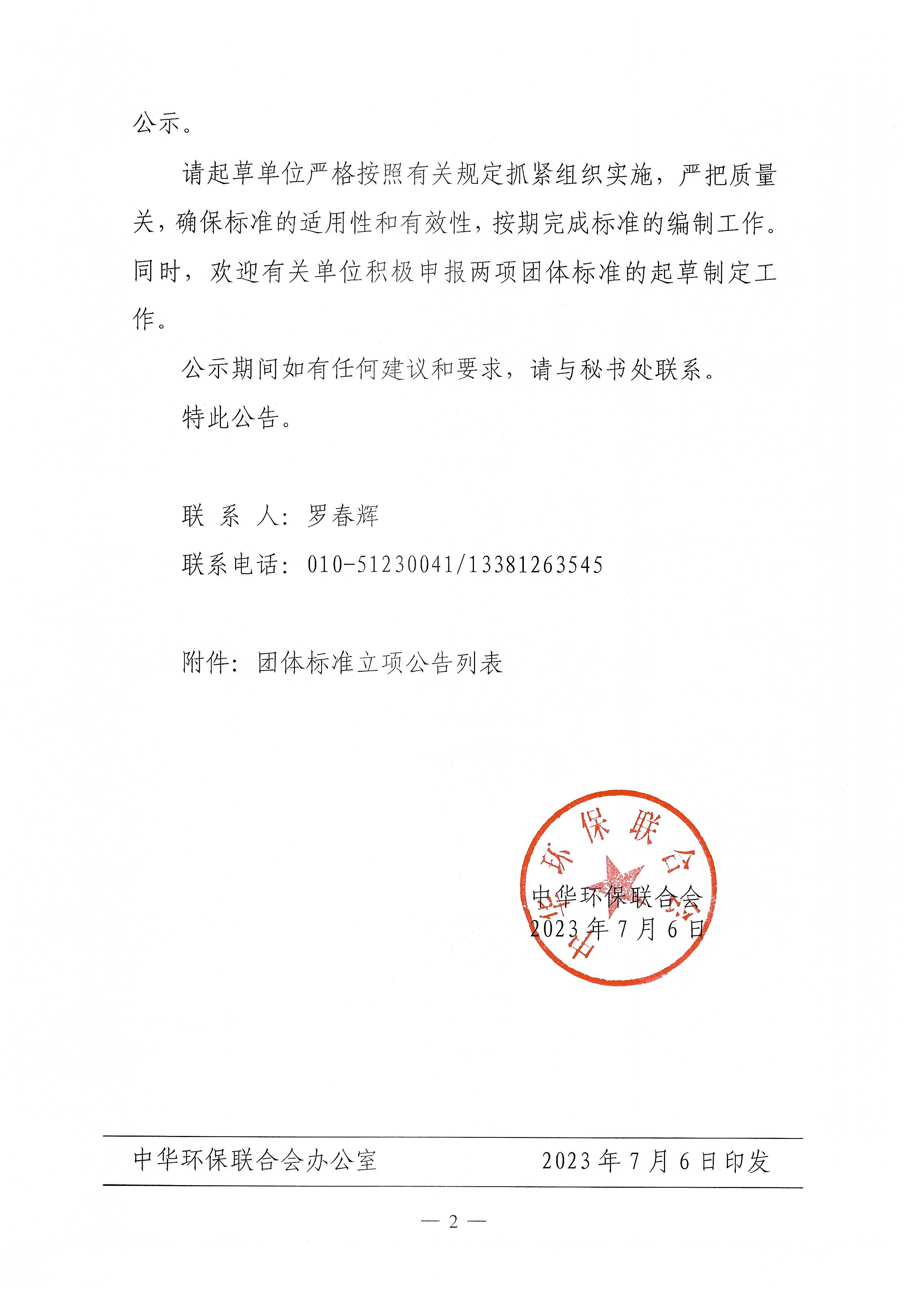 中华环保联合会关于公示2023年度