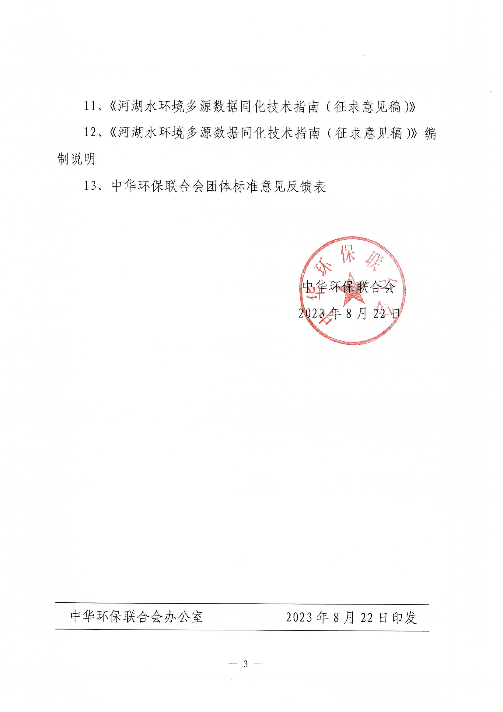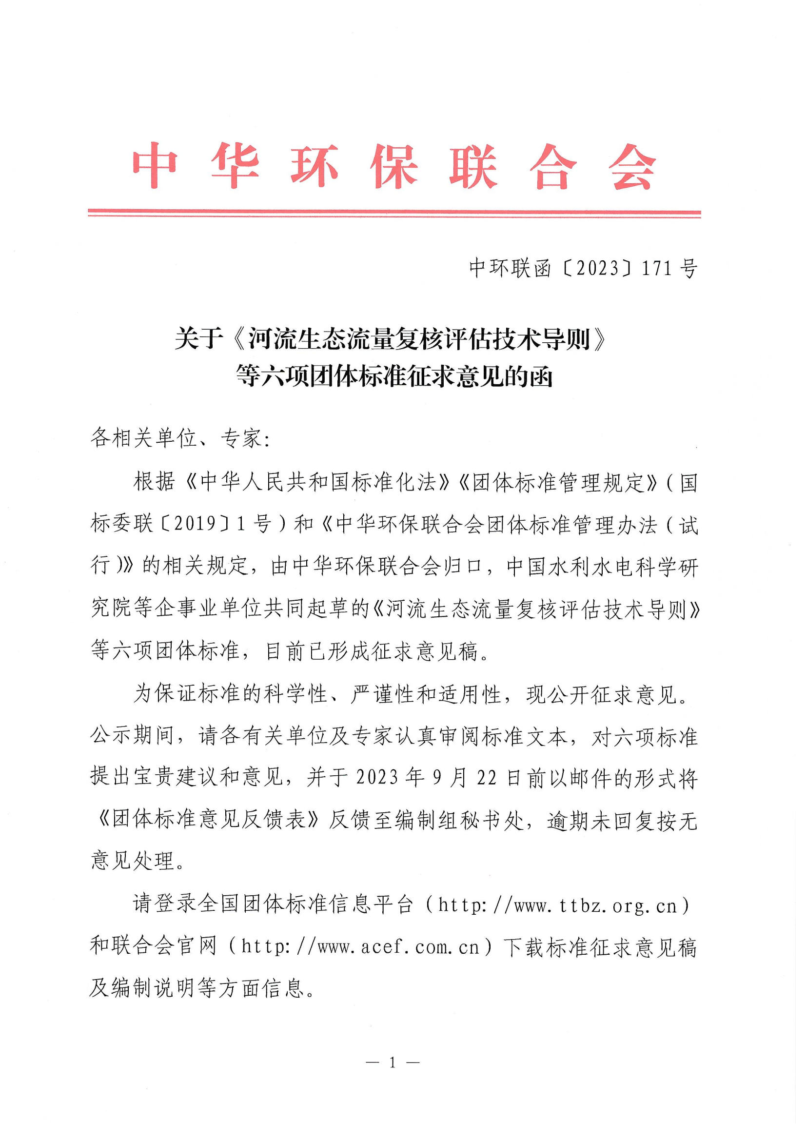 关于《河流生态流量复核评估技术导则》等六项团体标准征求意见的函