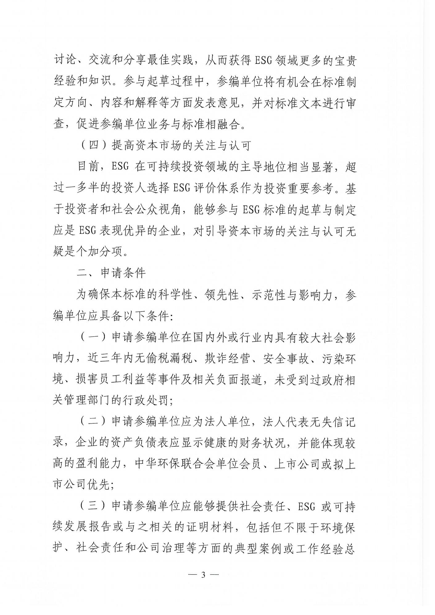 关于征集参加《企业ESG工作指南》等五项团体标准起草编制单位的通知
