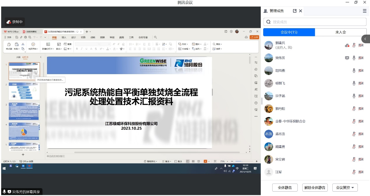 2023年10月25日,中华环保联合会能源环境专业委员会组织召开了“填埋场多源污染阻控关键技术研发与工程化应用”及“污泥系统热能自平衡单独焚烧全流程处理处置技术”两项科技成果评价会。