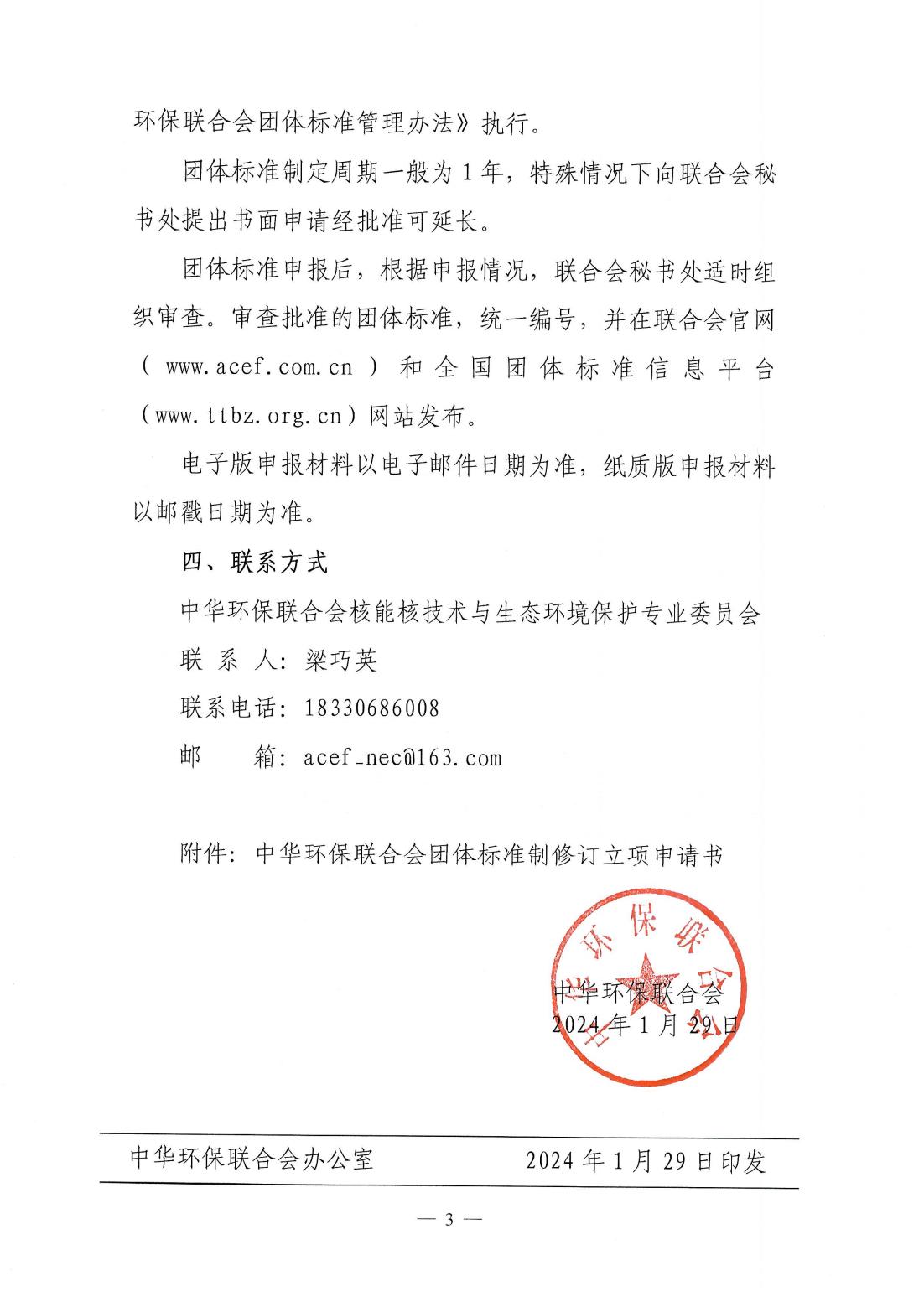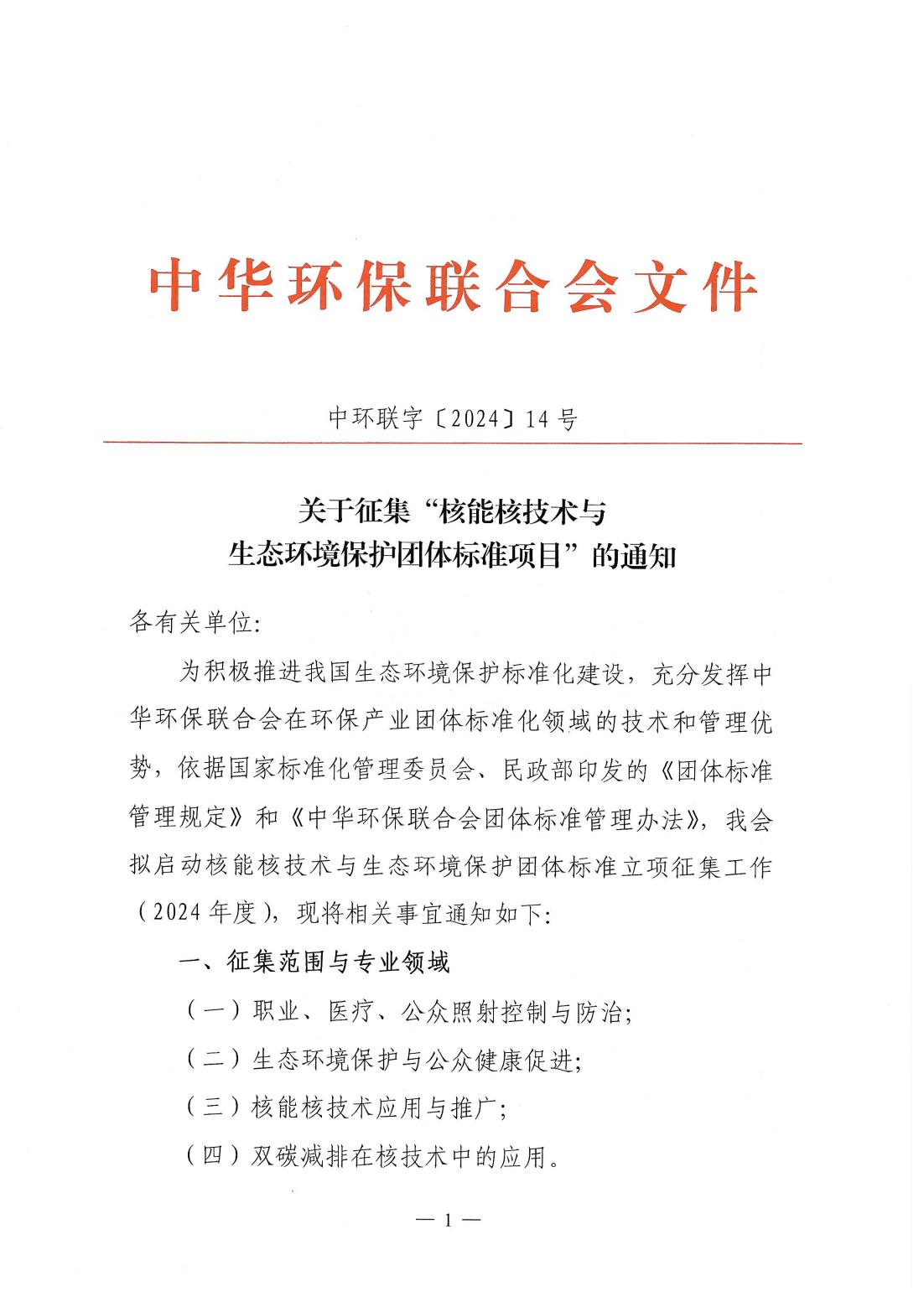 关于征集“核能核技术与生态环境保护团体标准项目”的通知
