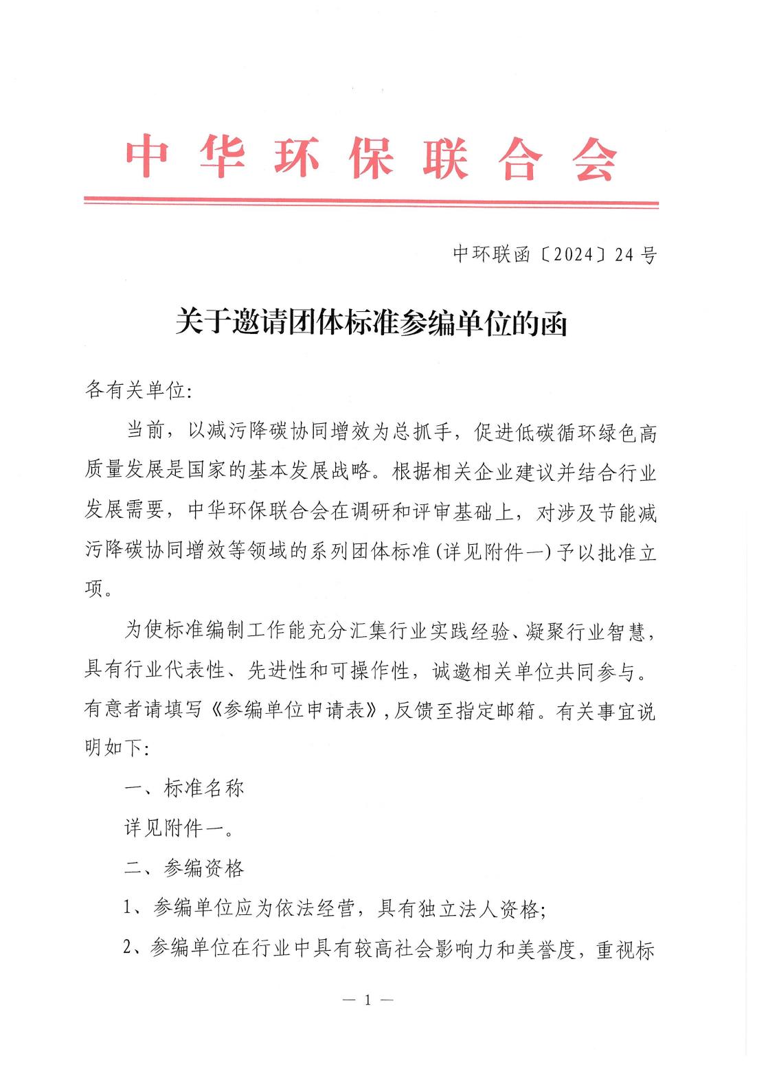 关于邀请团体标准参编单位的函