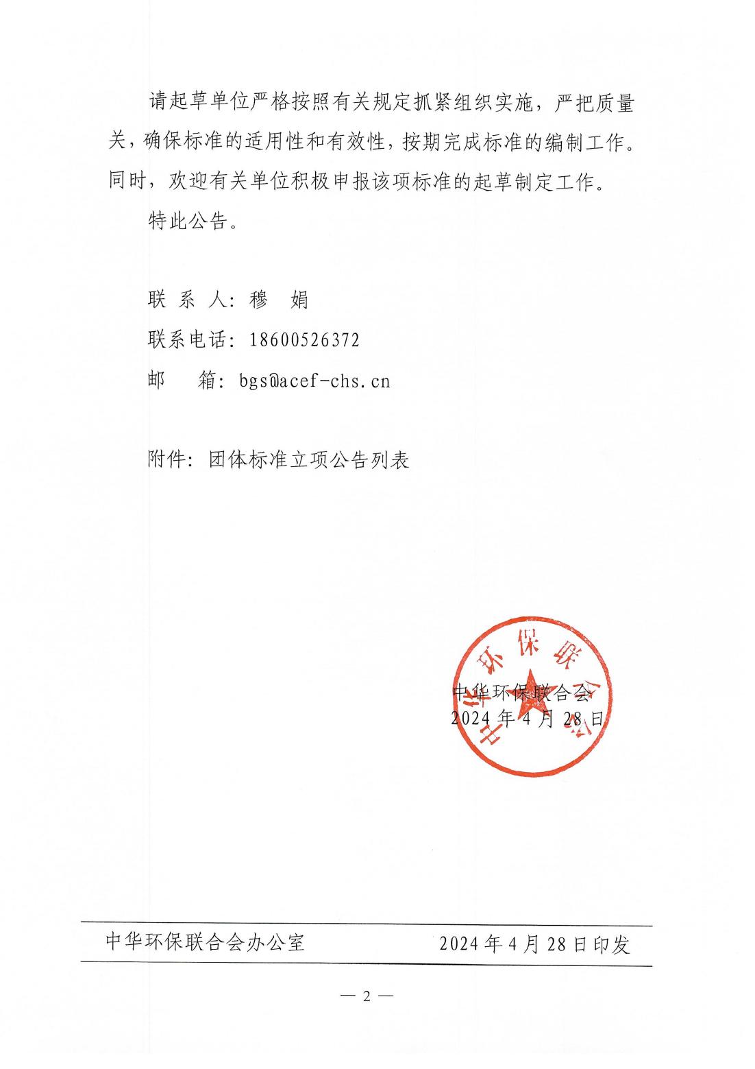 中华环保联合会环保技术标准研究专业委员会