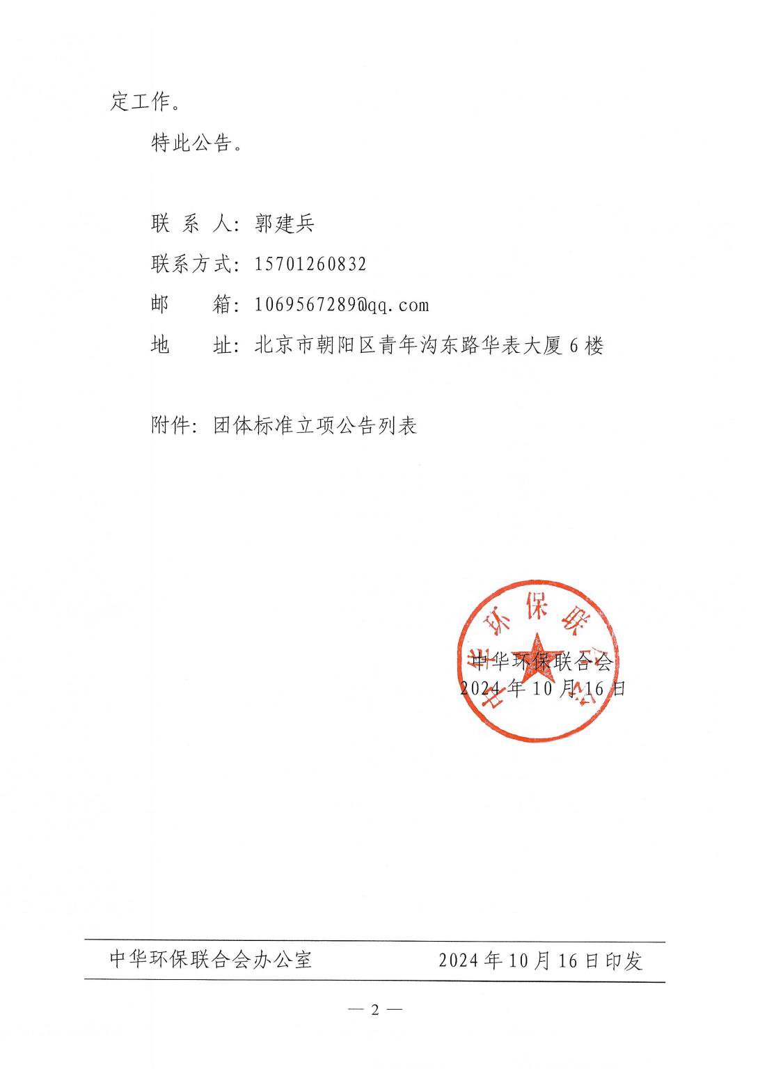 关于开展 2024年度中华环保联合会