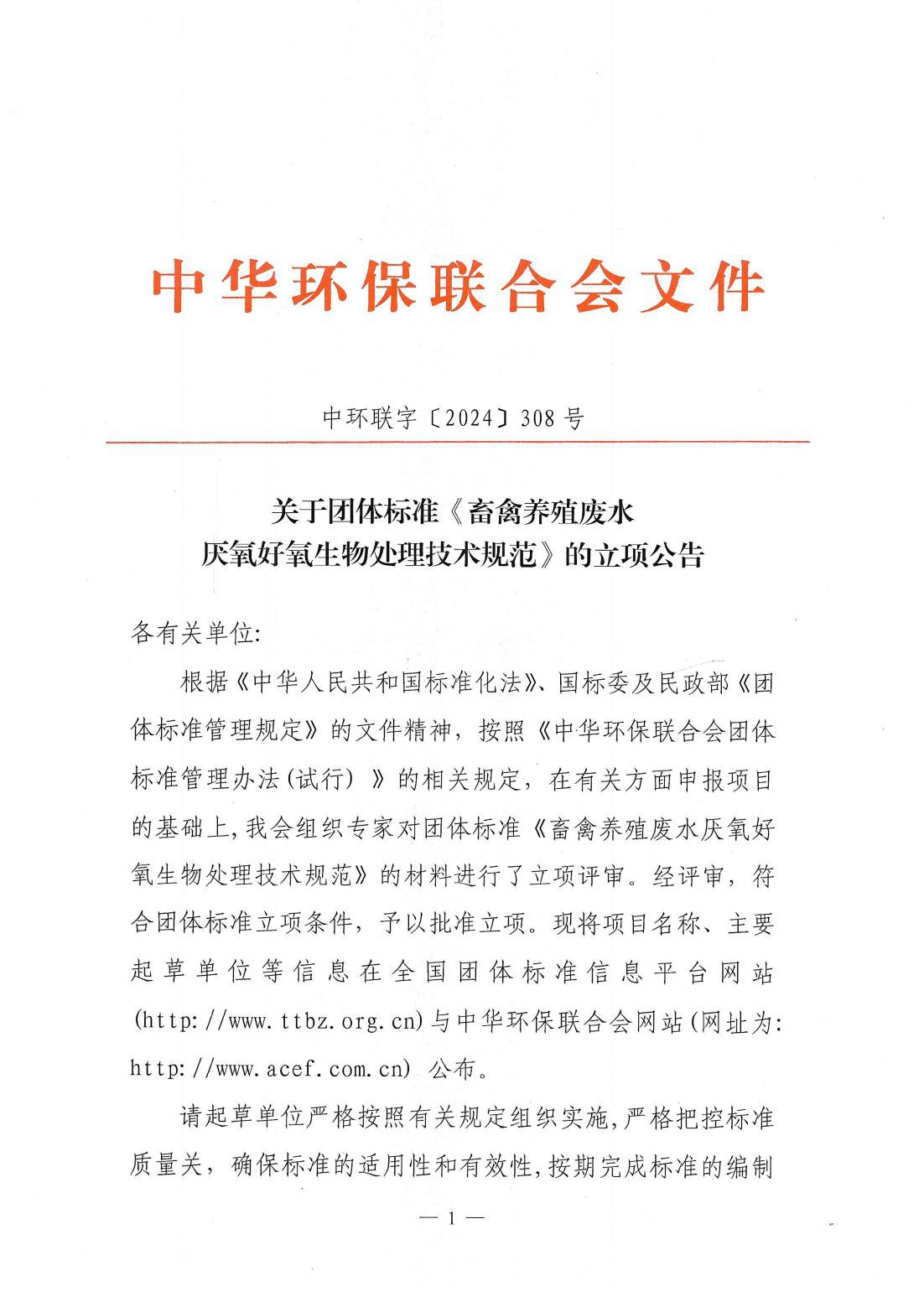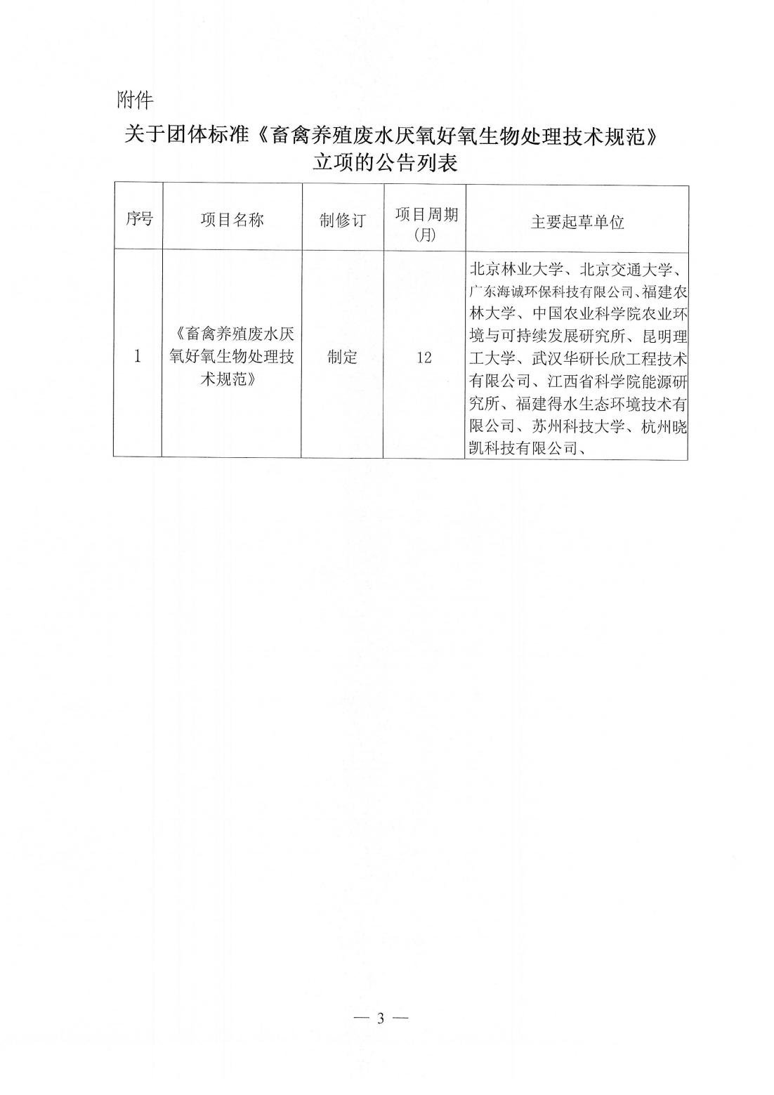 关于团体标准《畜禽养殖废水厌氧好氧生物处理技术规范》的立项公告