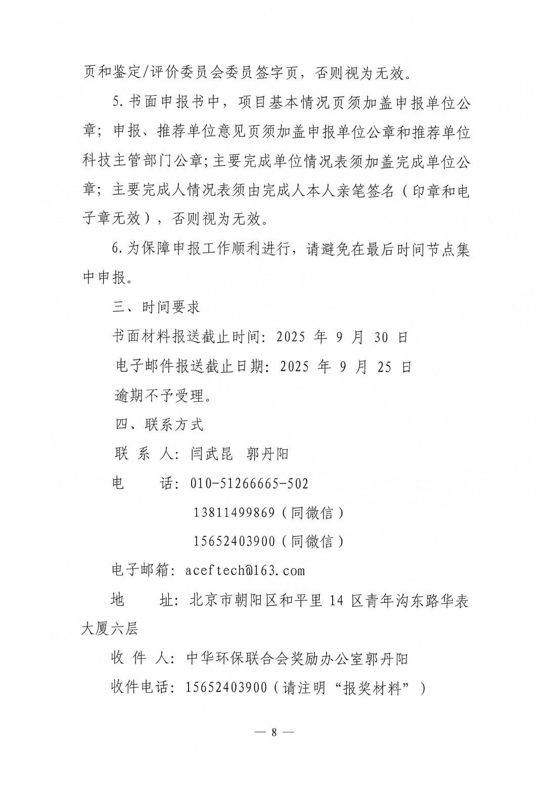 关于开展 2025年度中华环保联合会科学技术奖申报工作的通知