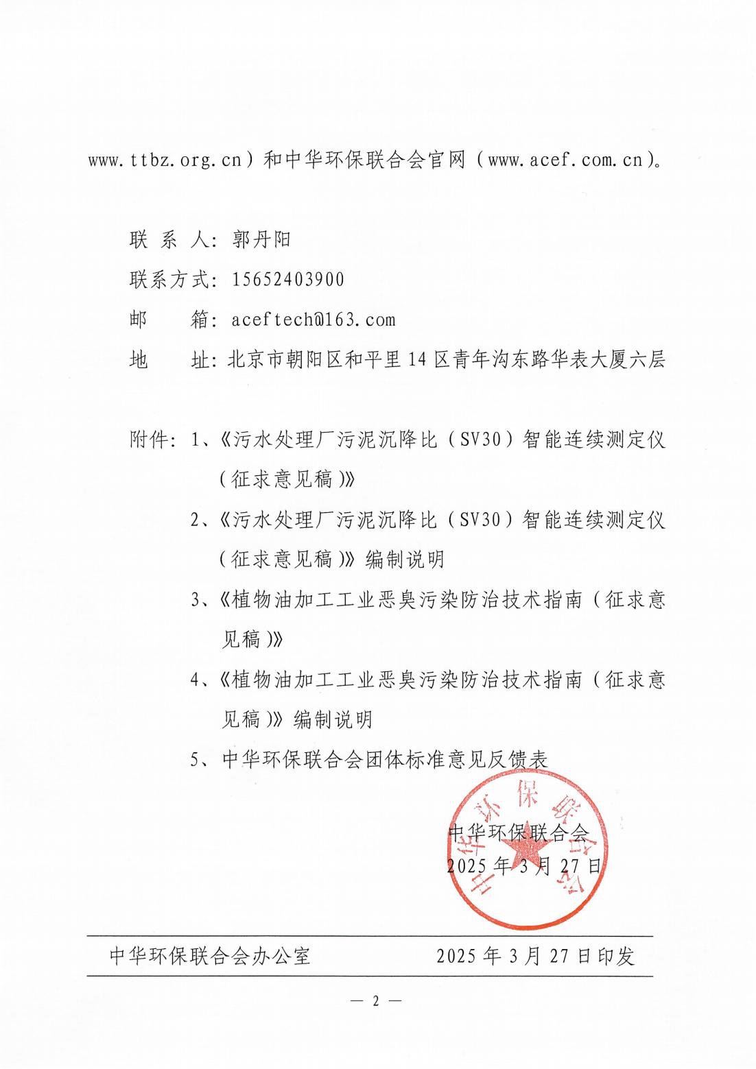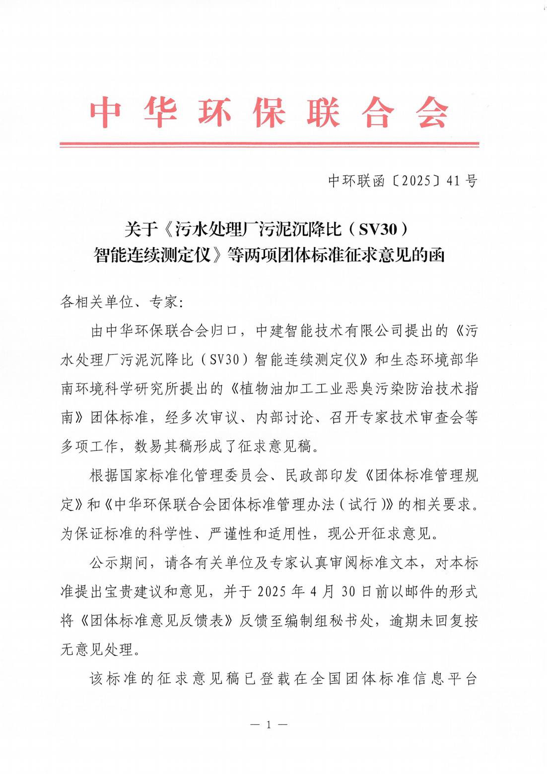关于《污水处理厂污泥沉降比(SV30)智能连续测定仪》等两项团体标准征求意见的函