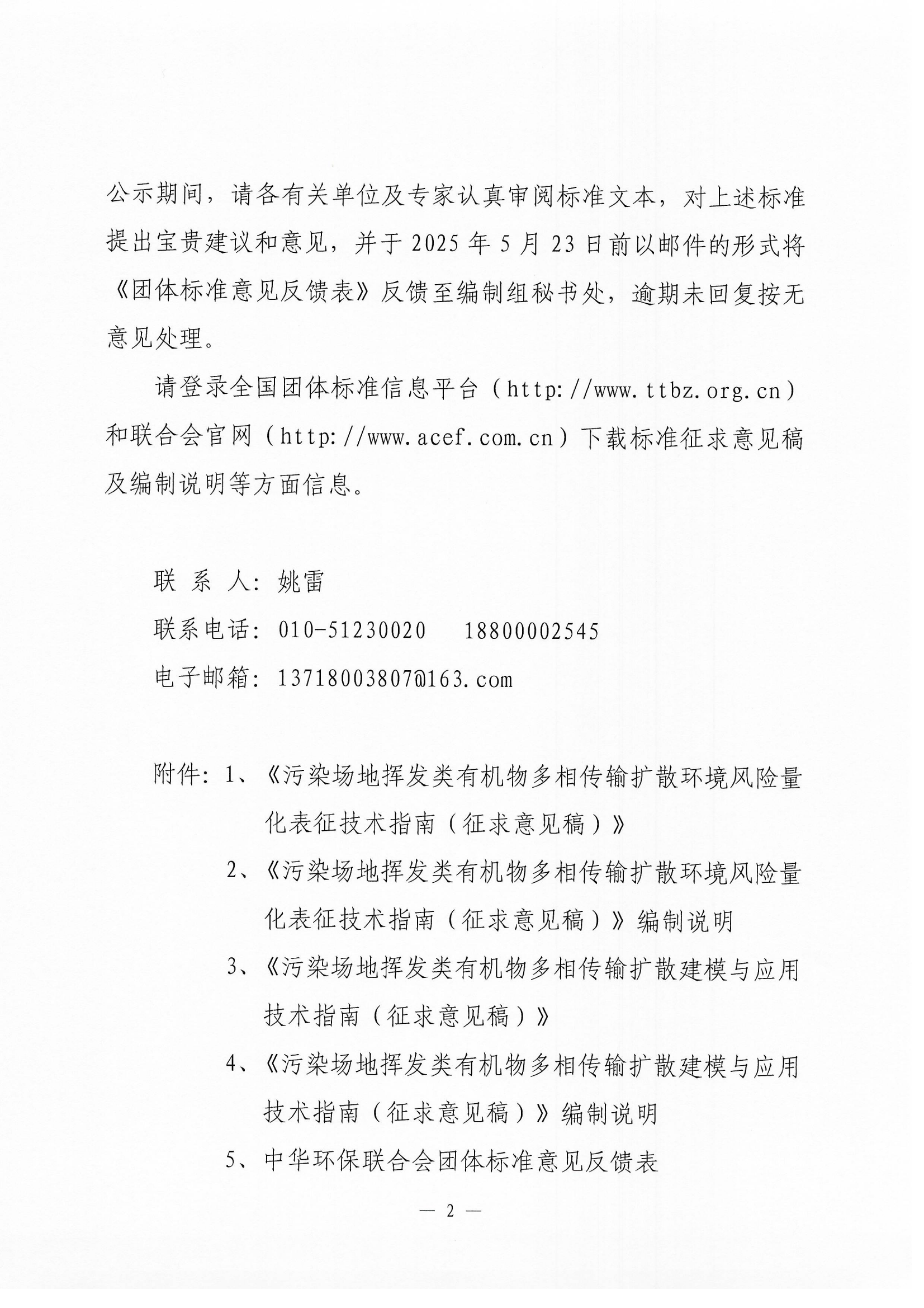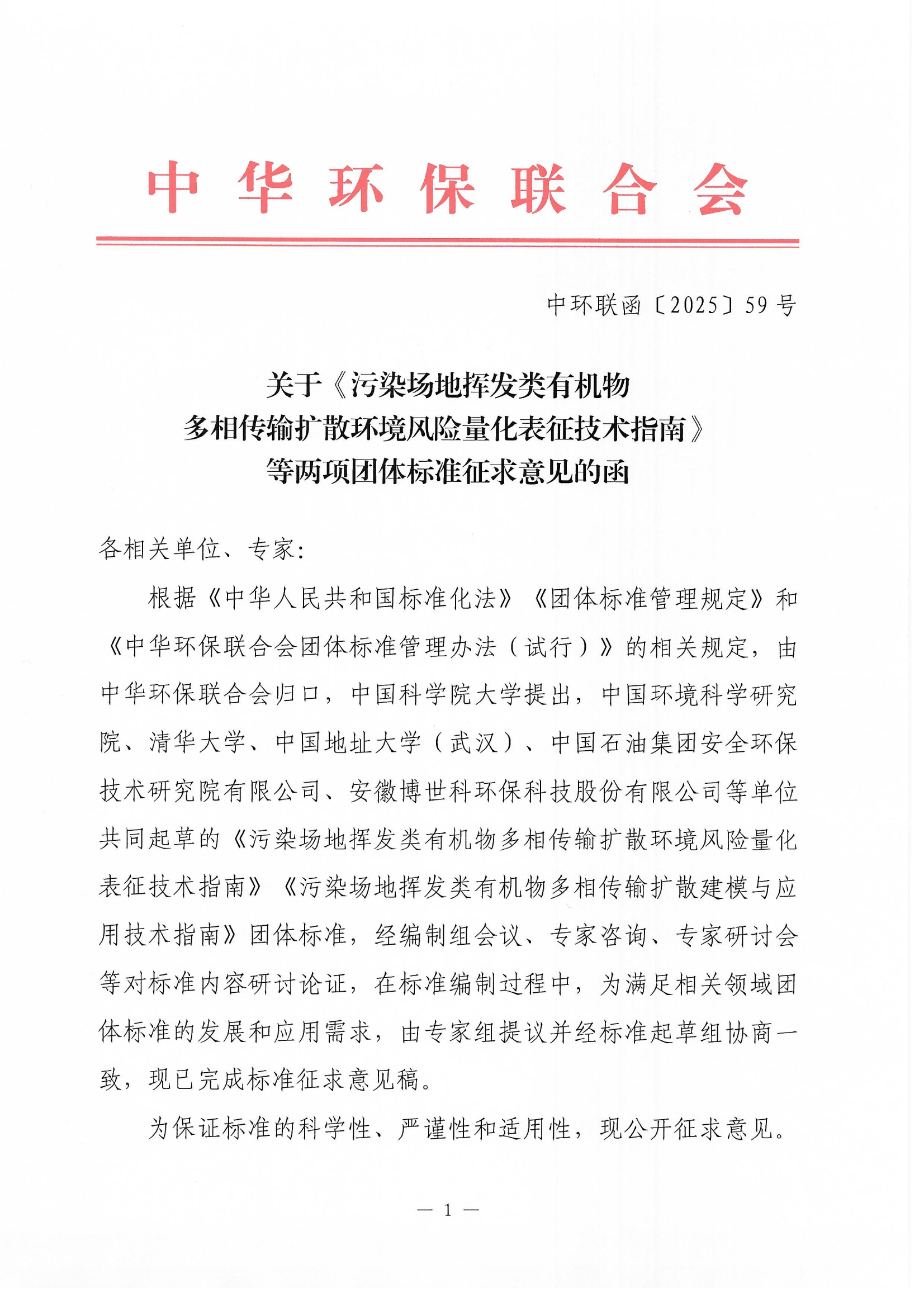 关于《污染场地挥发类有机物多相传输扩散环境风险量化表征技术指南》等两项团体标准征求意见的函