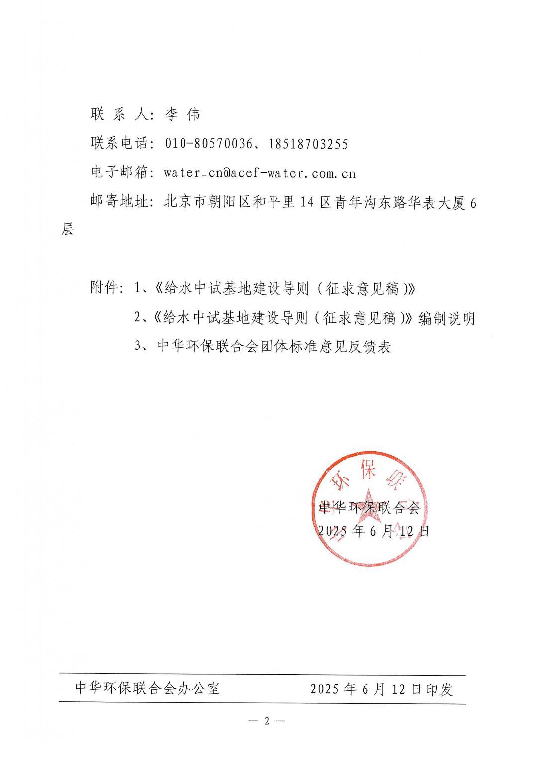 关于团体标准《给水中试基地建设导则》征求意见的函