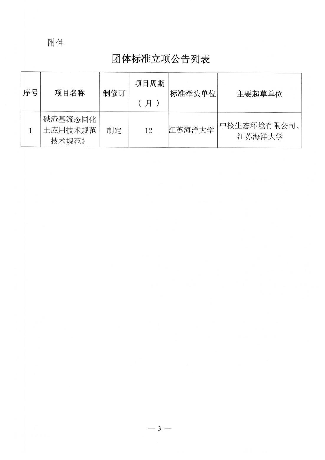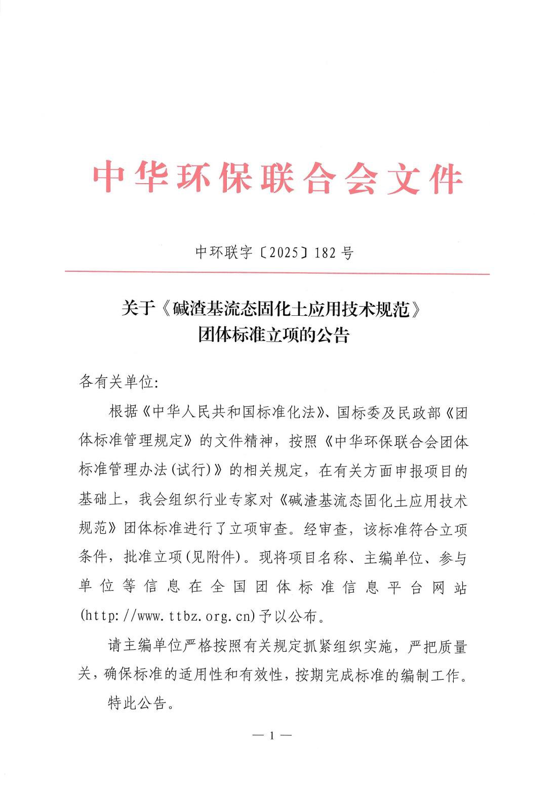 关于《碱渣基流态固化土应用技术规范》团体标准立项的公告