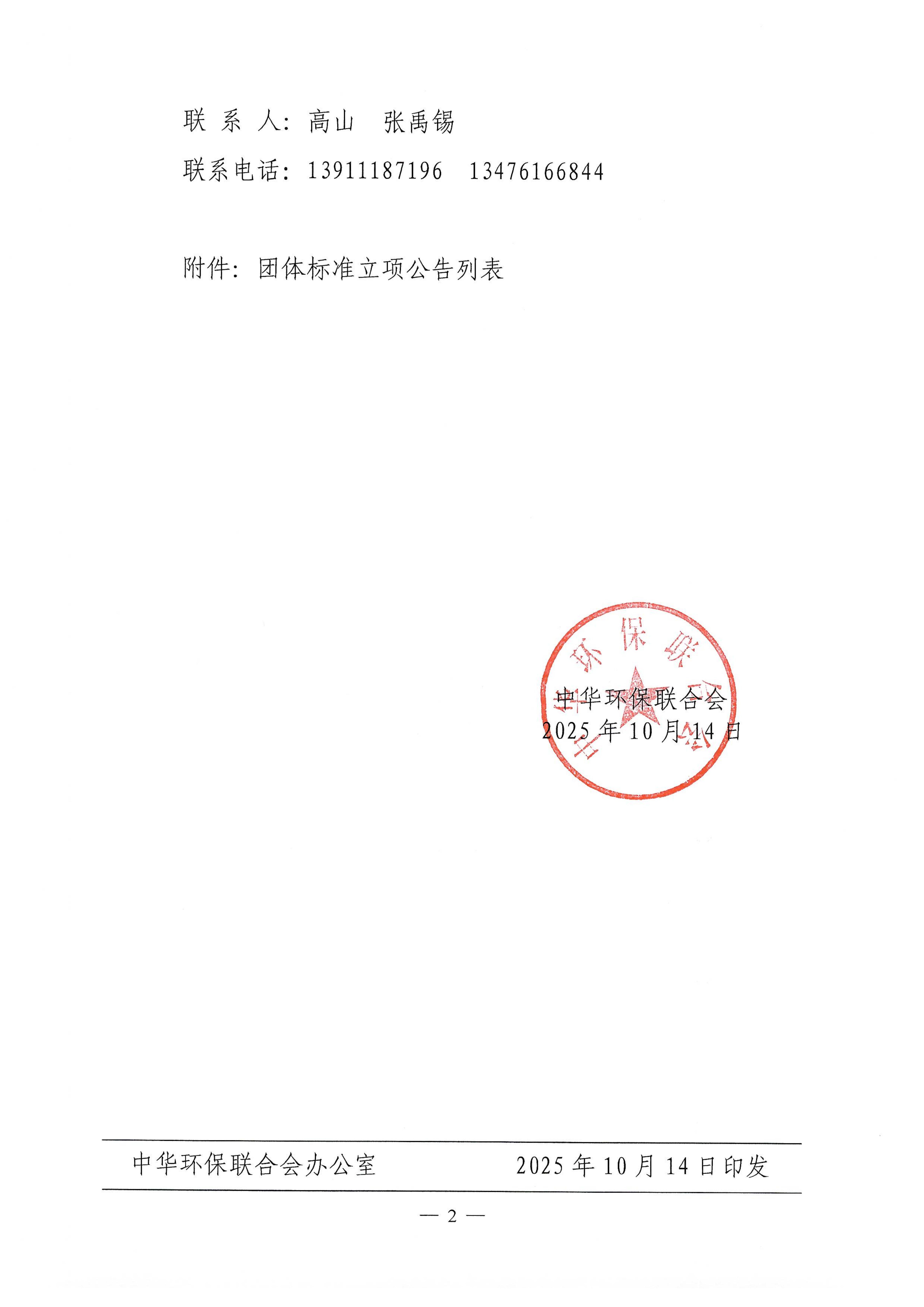 关于开展 2025年度中华环保联合会