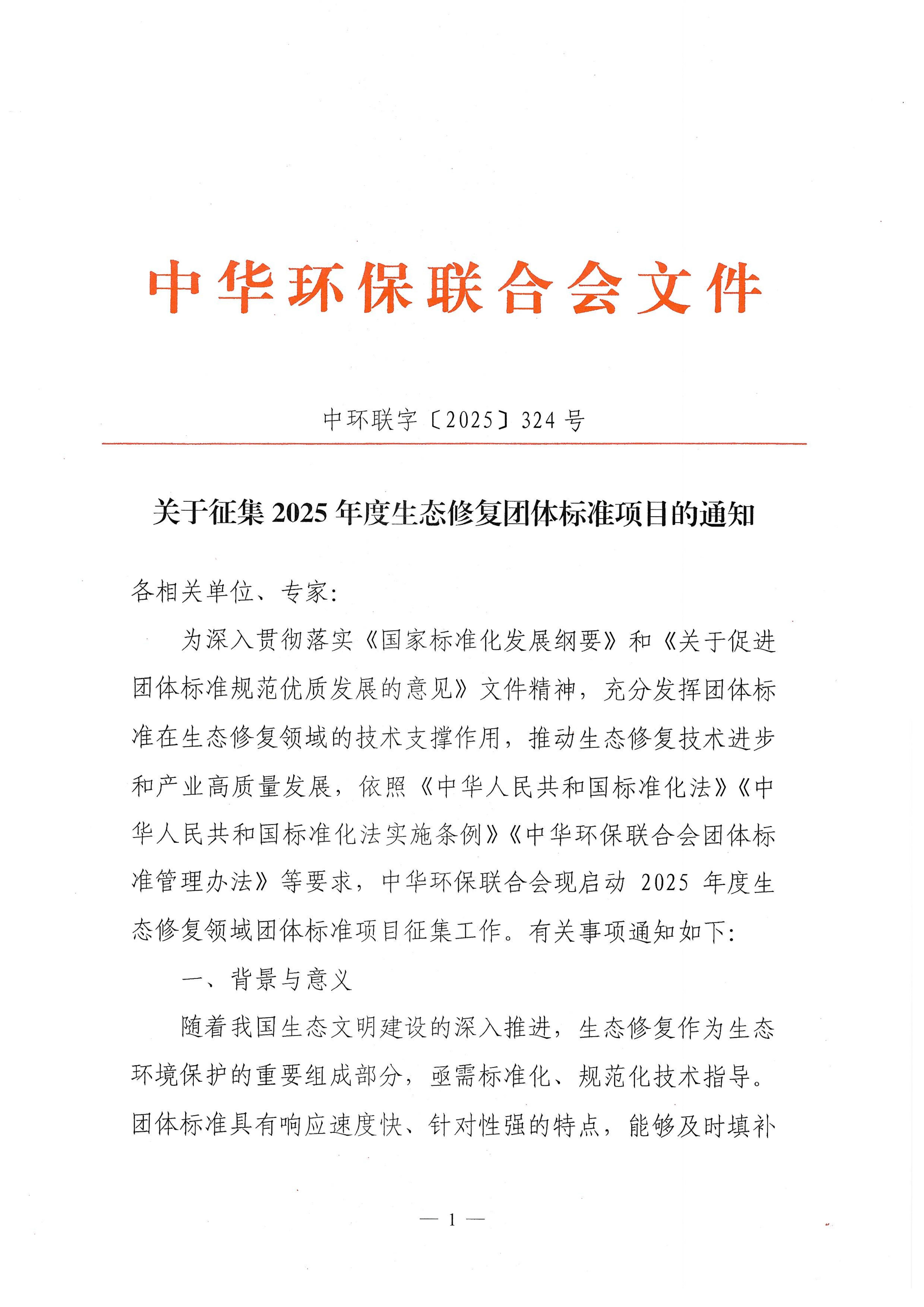 关于征集2025年度生态修复团体标准项目的通知
