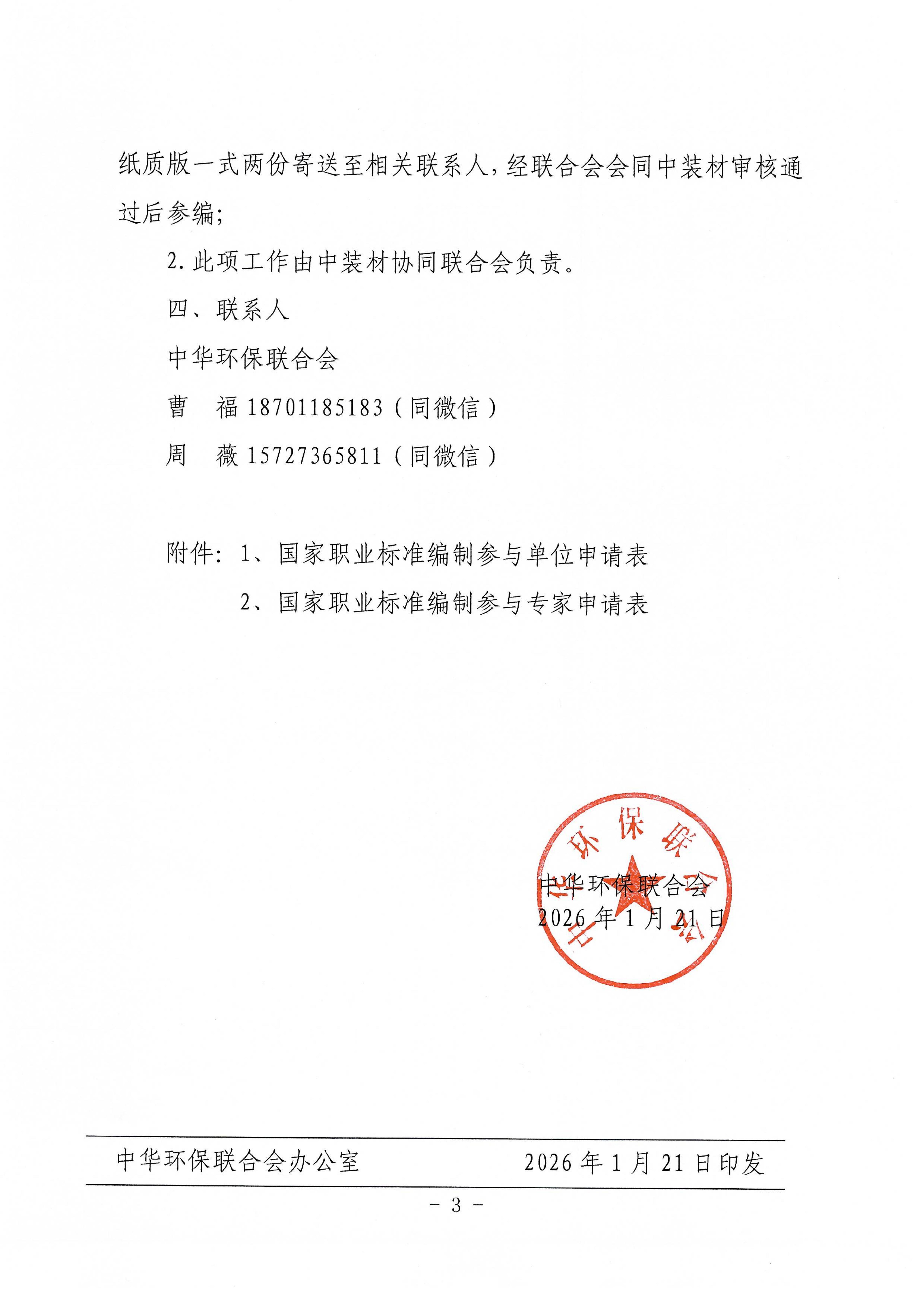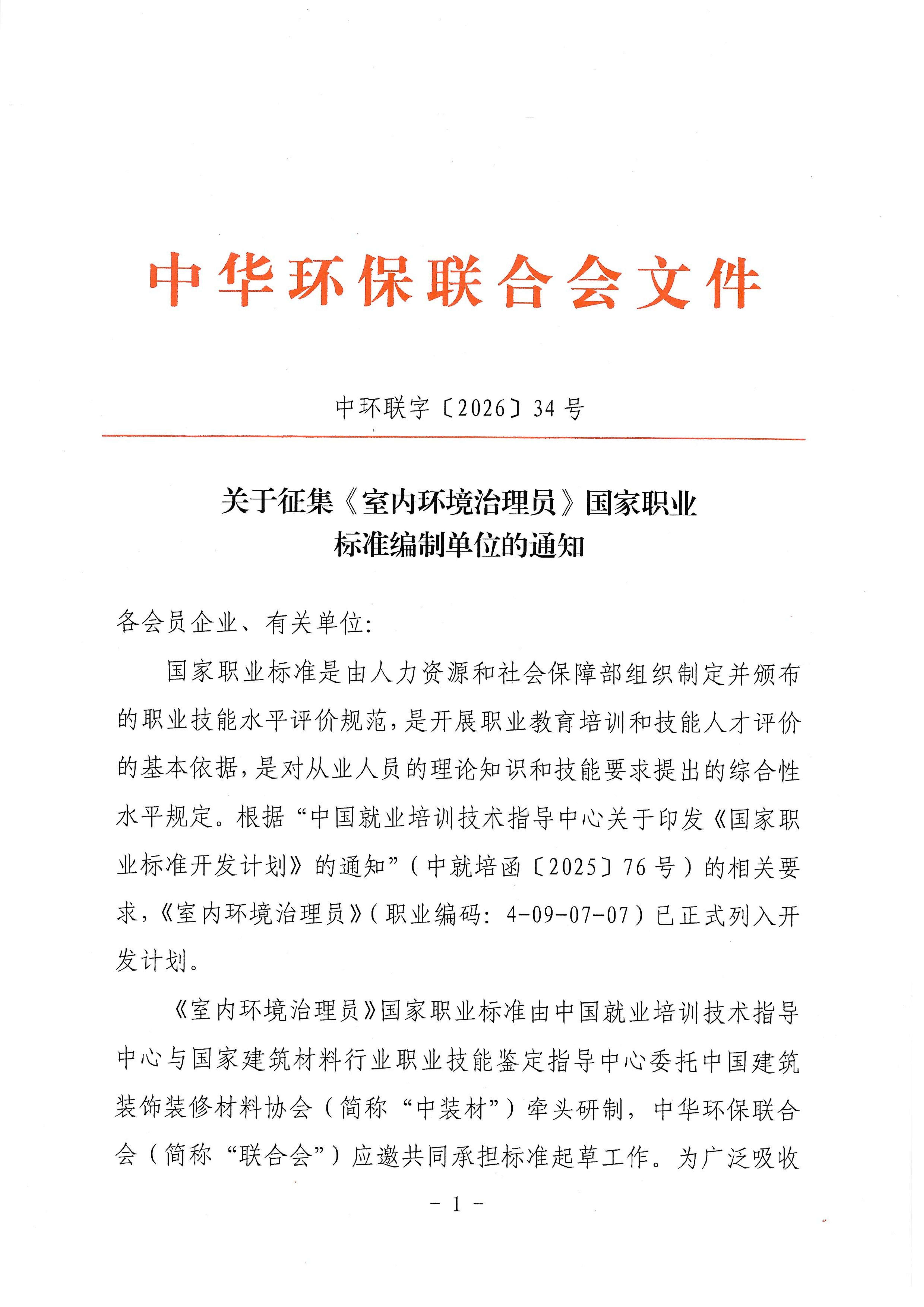 关于征集《室内环境治理员》国家职业标准编制单位的通知