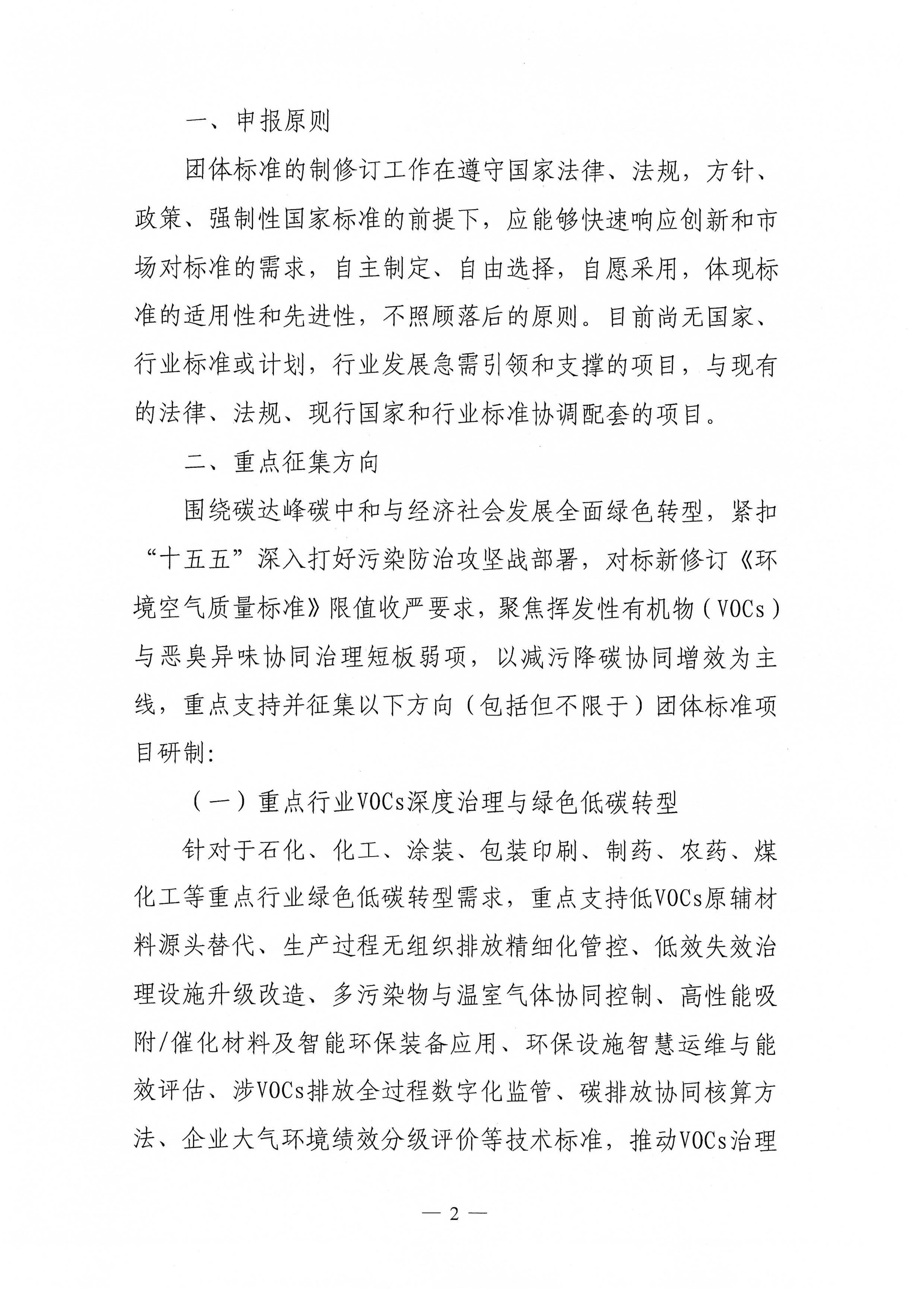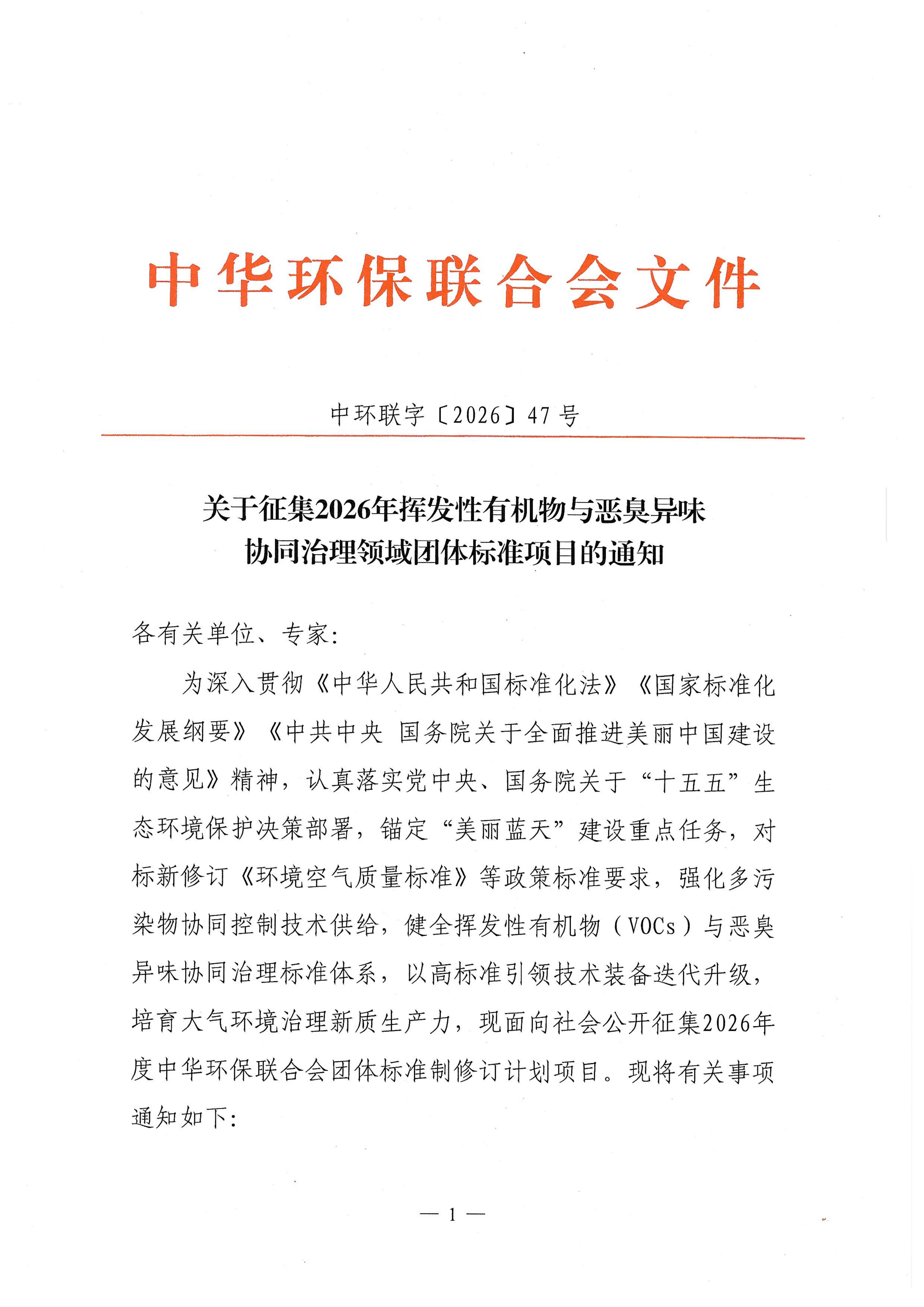 关于征集2026年挥发性有机物与恶臭异味协同治理领域团体标准项目的通知