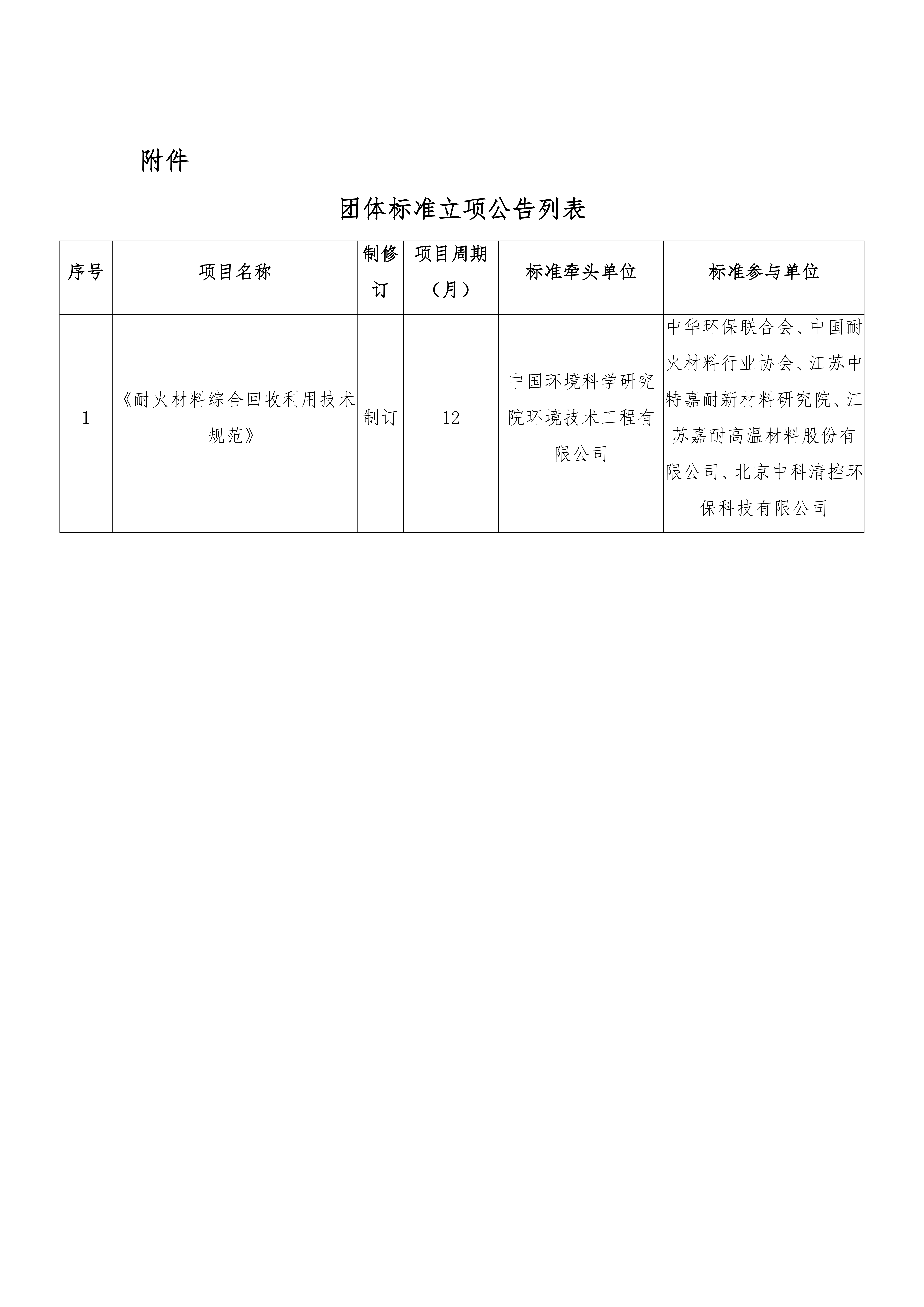 关于《耐火材料综合回收利用技术规范》团体标准立项的公告