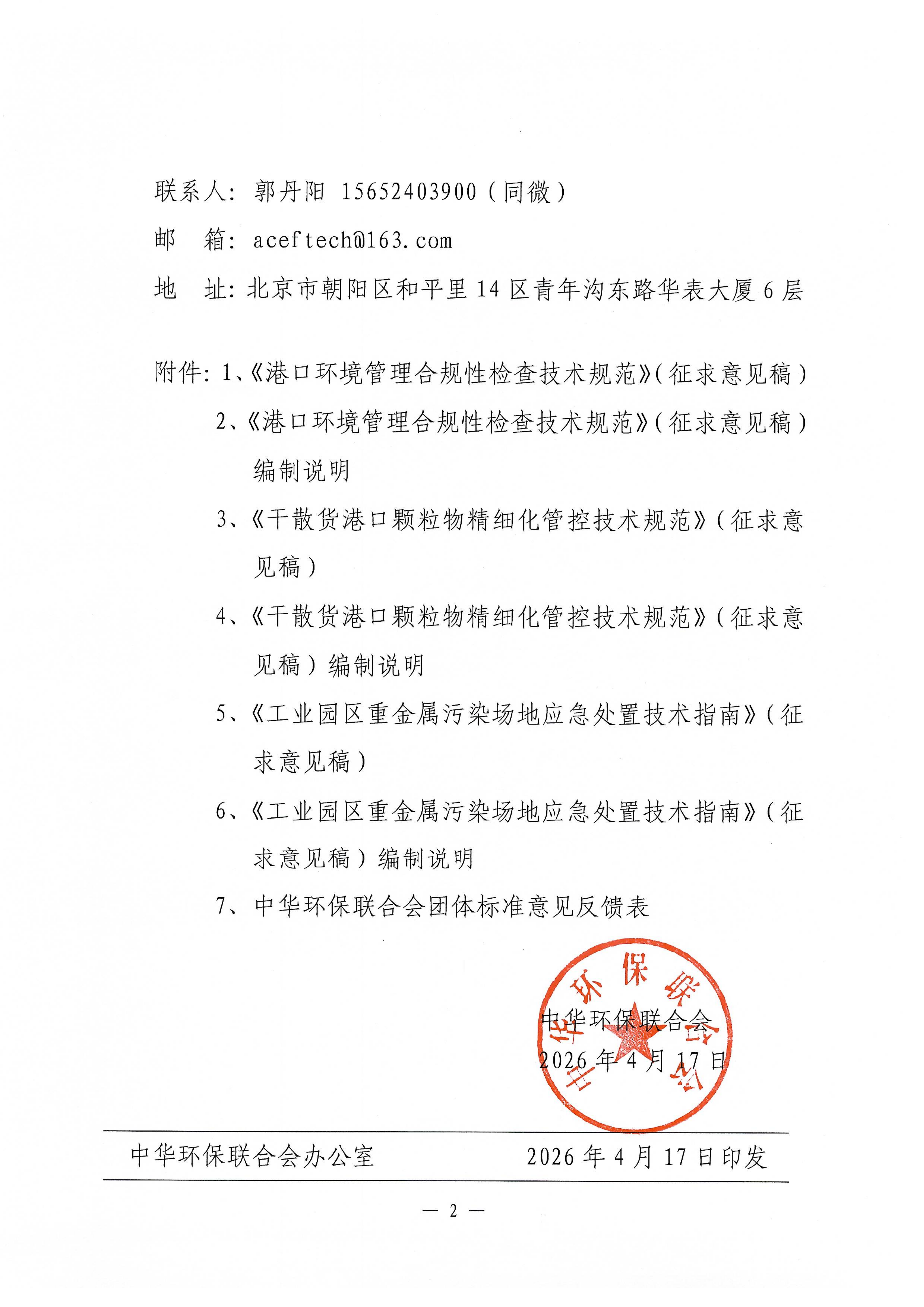 1.《港口环境管理合规性检查技术规范》(征求意见稿) |