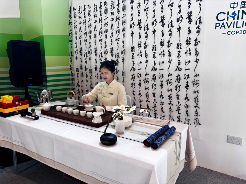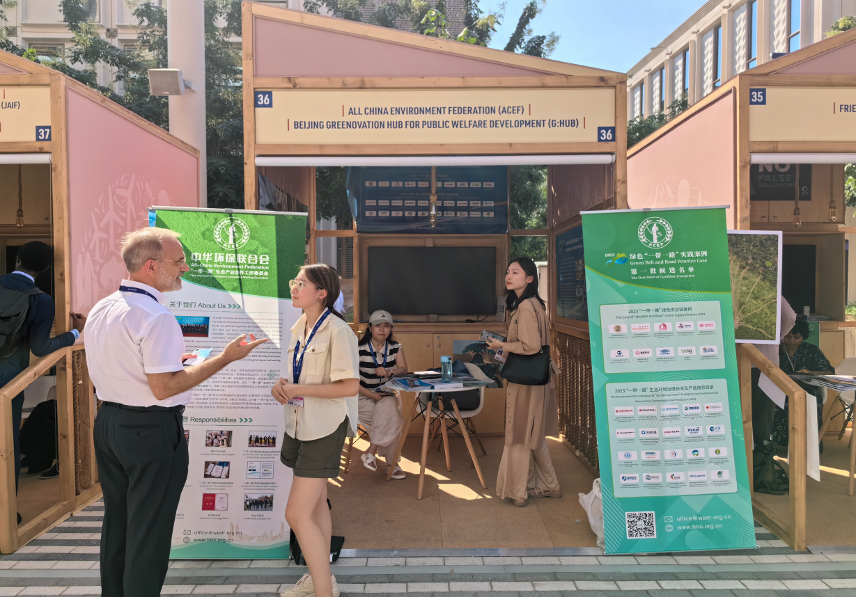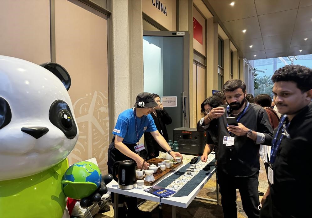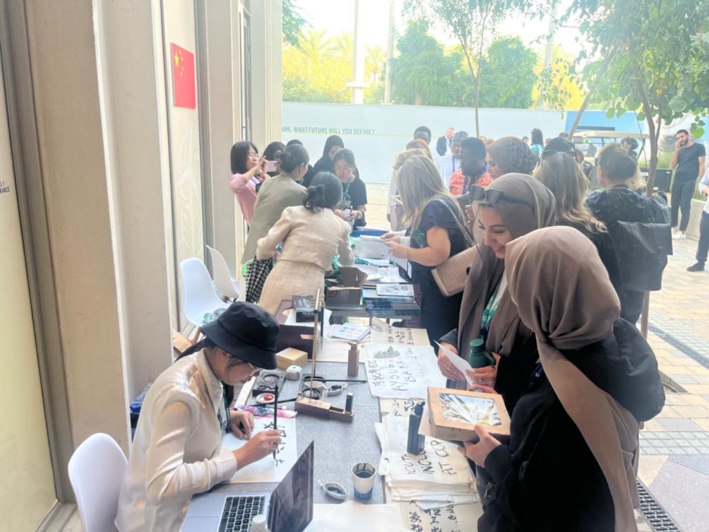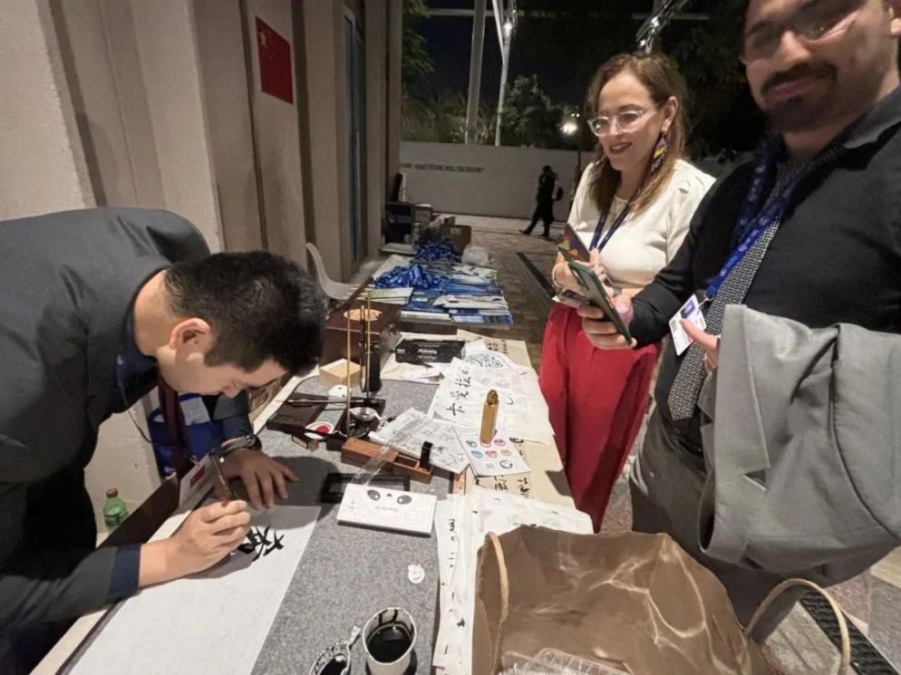 现场由中华环保联合会牵头组织,交流活动区志愿者和中国角志愿者负责运营的茶艺桌和书法台受到广大国际嘉宾欢迎,参与互动的来宾络绎不绝。