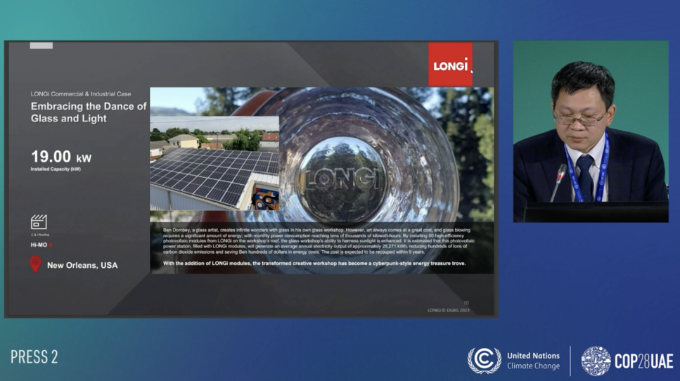 围绕低碳转型与气候传播,中华环保联合会于12月5日联合国气候大会官方新闻发布间,邀请来自隆基绿能和能源基金会的代表,通过现场交流和直播的方式分享了中国光伏领域、民间组织气候传播领域的前沿实践。