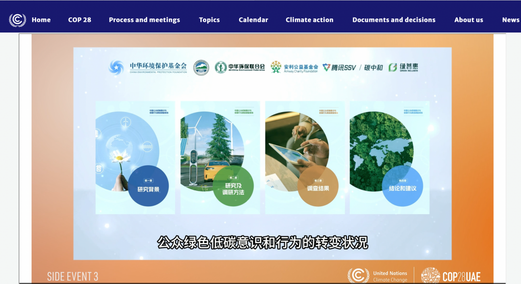 中华环保联合会于本次气候大会期间,现场牵头主办了20余场活动、深度参与和支持了中国角相关工作、同时筹备了大会蓝区Solar+馆和两周议程,向与会各国来宾系统展示了应对气候变化的中国民间行动,并着重与各利益相关方探讨了应对气候变化与其他环境议题的协同机制。以下为中华环保联合会COP28系列活动图文集锦: