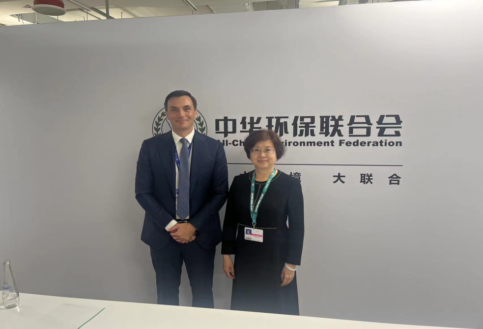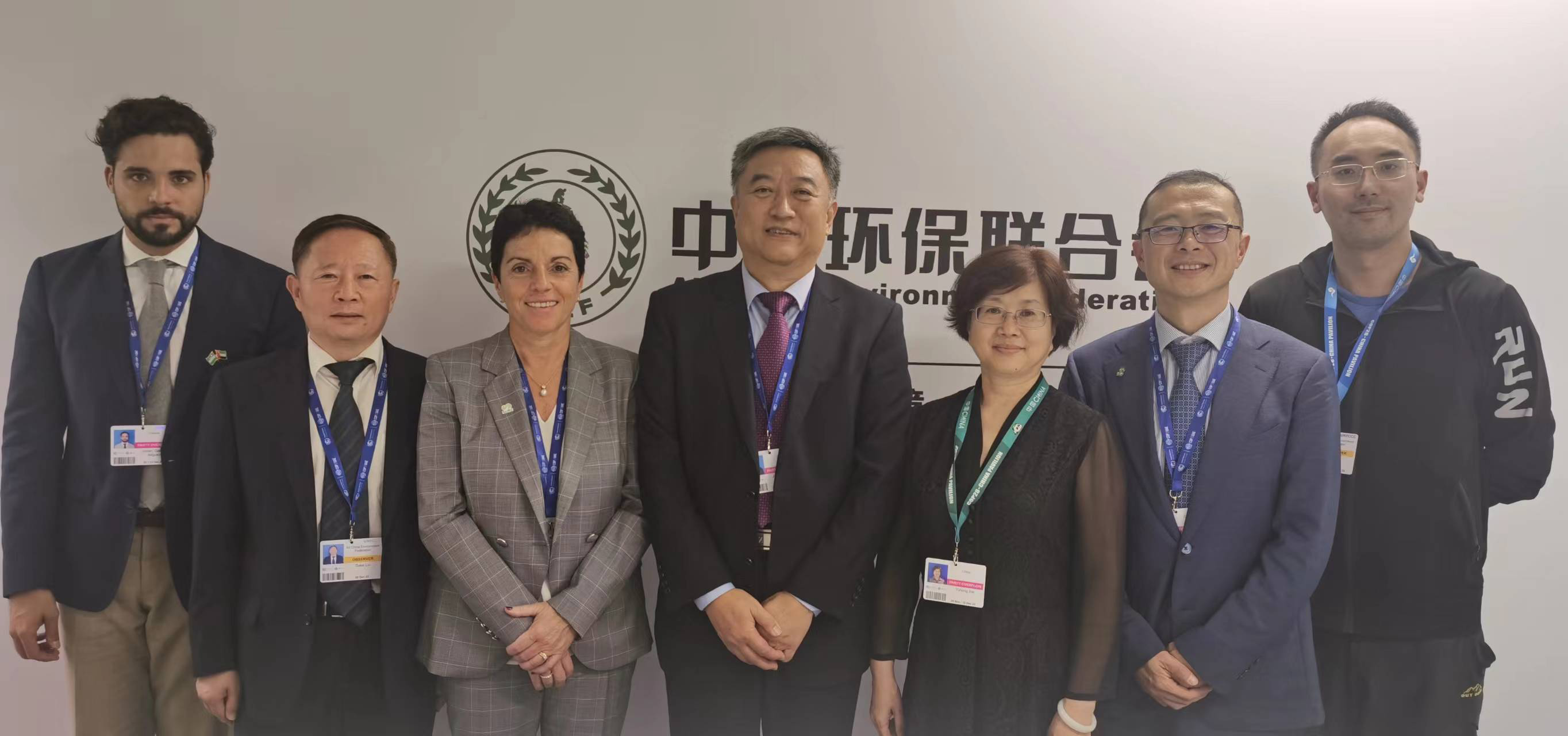 开幕活动后,中华环保联合会秘书长谢玉红,于COP28蓝区联合会会议室内,与联合会副主席单位领导,北京排水集团董事长张建新、北排能源董事长刘达克,共同接待了苏伊士集团董事长兼首席执行官苏冰岚(Sabrina Soussan)一行,围绕环境领域新技术开发、助力中国双碳目标等议题进行了深入的座谈交流。