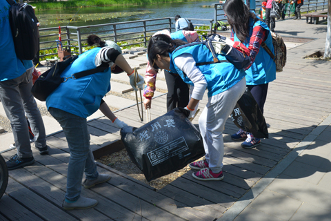 现场参与的环保志愿者