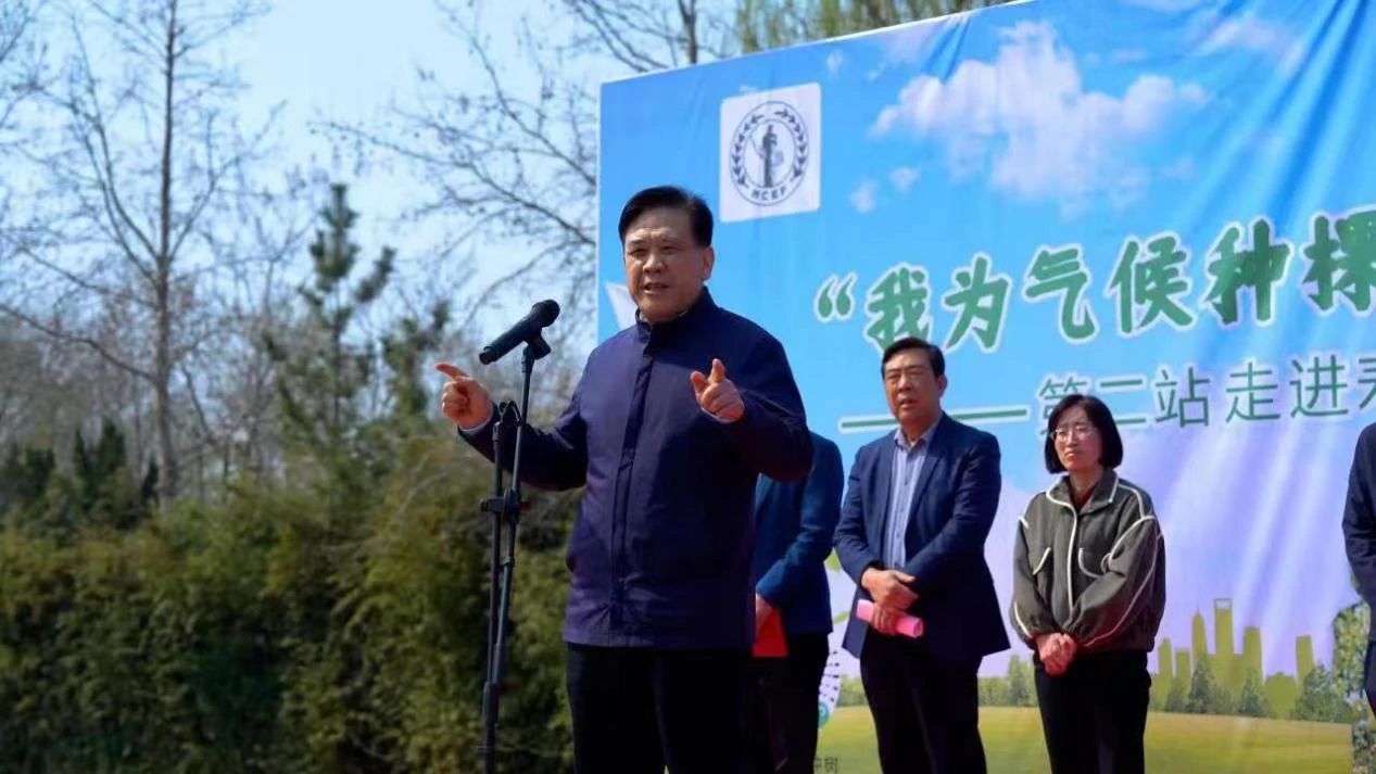 潍坊市自然资源和规划局负责人王垂军在致辞中说:潍坊市位于山东半岛中部,南靠沂蒙山、面朝渤海湾,陆域面积1.61万平方公里,海域面积1400平方公里,常住人口940万。是世界风筝都、中国画都、中国食品谷、中国动力城和蓝宝石城,被命名为全国文明城市、国家森林城市、国家环保模范城市、国家园林城市等等。我为气候种棵树公益活动,将促进公众广泛关注和参与植树造林,增强全民绿化意识和减排观念,为营建绿色地球、助力碳达峰和碳中和,承担一份责任,贡献一份力量。