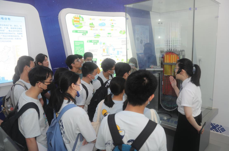 在广西核与辐射安全监管科普展厅,科普工作人员带领师生们通过学习辐射安全基础知识、核安全文化宣贯、观看核能发电动态模型演示等,让学生们深入的了解核电在减少碳排放、生态环境保护、促进绿色发展方面做出的贡献,对什么是辐射、辐射来自哪里、对人体有什么影响等科学知识有了更多的认识。随后师生们有序地参观了放射性分析实验室,工作人员对放射性核素的分析测量过程进行了详细的解说,学生们对动手做实验反应热烈。