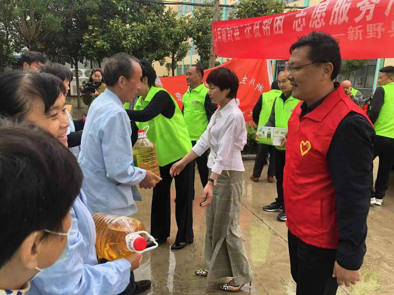 5月21日上午,中华环保联合会河南省办事处刘春梅部长带领来自内乡县、驻马店市、淅川县、桐柏县、新野县的生态环境志愿者服务队,顶风冒雨,携带价值3万余元的慰问金和慰问品,走进新野县康寿老年公寓,开展“心手相牵、与爱同行”公益慈善活动。新野县政法委副书记袁兴保,新野县生态环境保护局党支部书记高伟敏,残联副理事长李祥林、宣传部副部长张建辉等参加了活动。