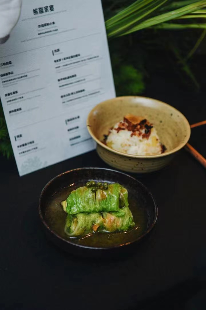 “自然的礼物暨熊猫家宴”美食品鉴活动中,家宴菜单由博舍行政副总厨徐存贵负责设计,一共6道菜,其中16种食材采购自大熊猫栖息地周边社区,使社区农户直接受益,实现从“农场(或林场)直接到餐桌” 。此外,在烹饪中,主办方秉承减少食物浪费的理念,每道菜肴也尽量利用食材的边角料,不浪费任何可食用的部分。菜式新颖、简洁,恰到好处地体现了食材的自然美感,受到到访嘉宾的好评。