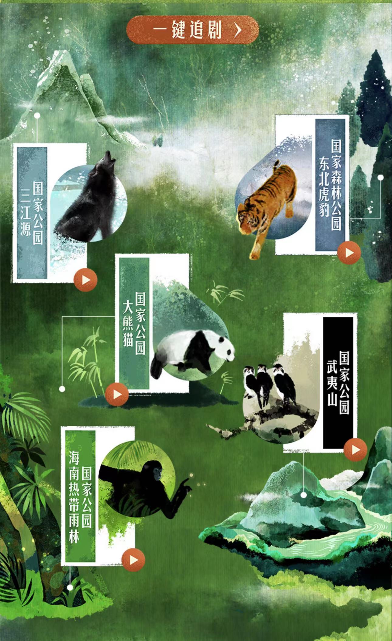 《我的国家公园》共五集,分别是《大熊猫国家公园》《海南热带雨林国家公园》《三江源国家公园》《东北虎豹国家公园》《武夷山国家公园》。其中,上映首集为《大熊猫国家公园》,数据显示,截至发稿时止,已有120多万人点击观看。