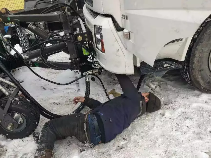 分秒必争,使命必达。菏泽突降大雪,菏泽某环境服务有限公司特调配我司除雪滚扫两台,但在安装完成后,车辆出现不能正常升起和放下刷头的故障,不能正常工作。