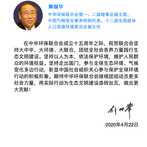 时值中华环保联合会成立十五周年,陆续刊发领导寄语。