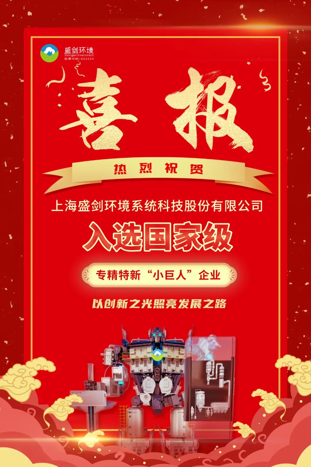 此次获评国家级“专精特新”中小企业,既表明盛剑环境在创新能力、技术水平等方面的综合实力被充分认可,也是对盛剑环境不断塑造品牌新优势,提升核心自驱力的积极鞭策!未来,盛剑环境将勇立创新潮头,充分发挥“专精特新”中小企业的带头作用,以匠心铸精品、以质量树品牌,不断提高核心竞争力,以创新之光照亮发展之路,为绿色科技产业高质量发展贡献盛剑力量。