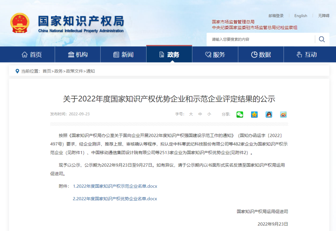 2022年度国家知识产权优势企业。