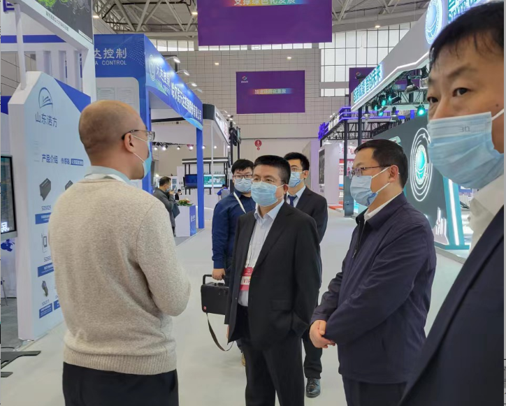 淄博市市委书记马晓磊、泰安市工信局局长黄正玉在展位前与我司副总刘一平进行了详细沟通。
