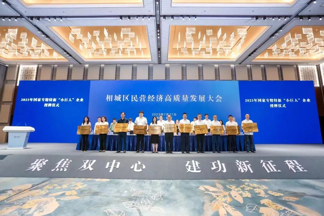 与此同时,7月27日相城区民营经济高质量发展大会举行。仕净科技总经理朱叶(以下简称”朱总“)受邀参加此次大会。与会上,今年以来获得国家、省、市级重要荣誉的企业名单正式发布,仕净科技获得2023年国家级专精特新“小巨人”荣誉,朱总作为企业代表获得授牌。