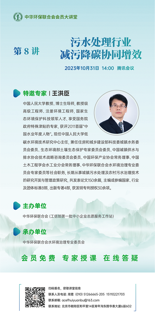 为更好的服务于会员企业,进一步搭建会员企业沟通交流的平台,助力会员企业发展,发挥中华环保联合会作为工信部第一批中小企业志愿服务工作站的作用,10月31日14:00,以线上视频形式(腾讯会议)举办“中华环保联合会会员大讲堂”第八讲。