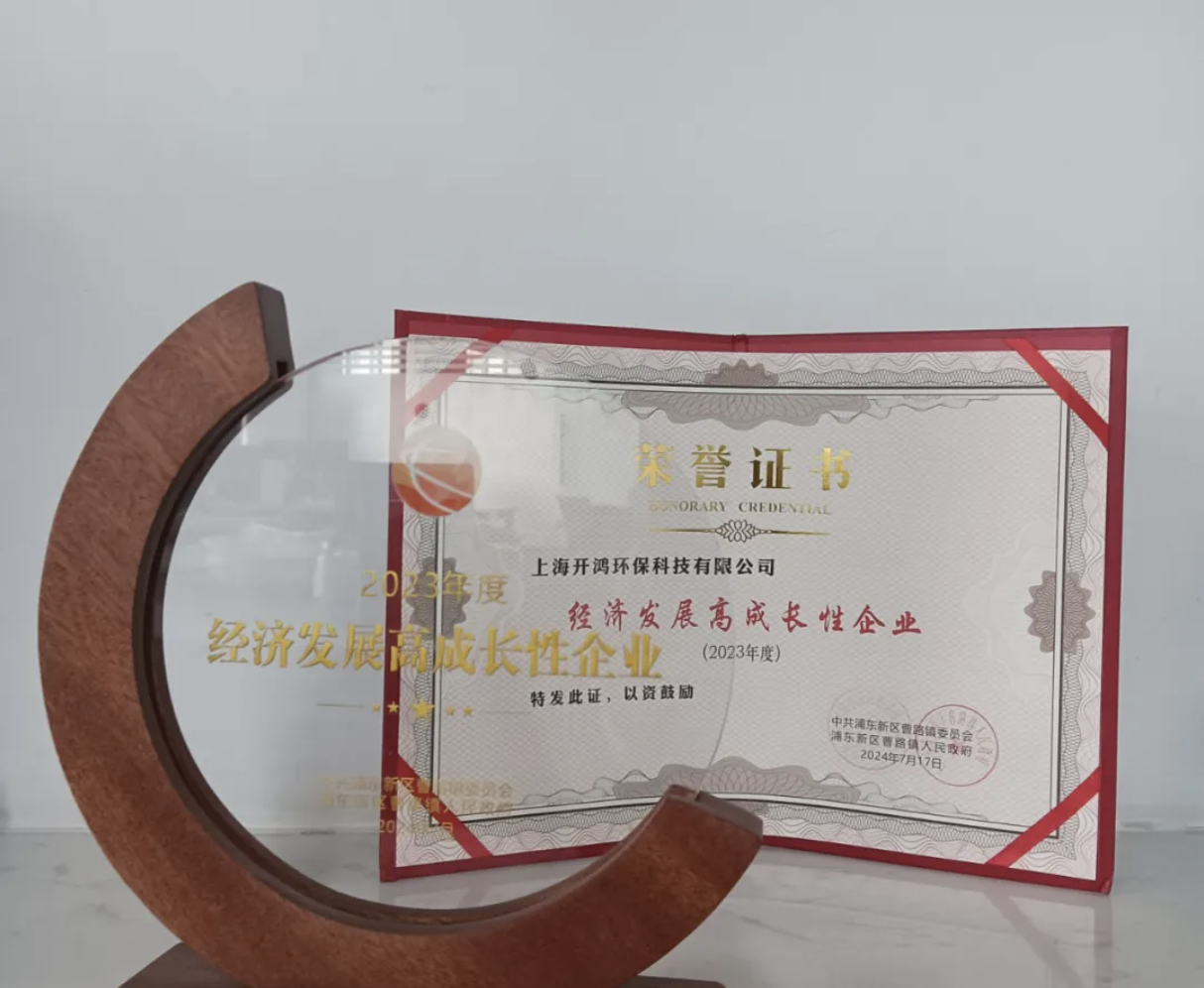 上海市浦东新区曹路镇政府举办“优化营商环境暨重点企业表彰大会”,上海开鸿环保科技有限公司荣获“2023年度经济发展高成长性企业”。这一荣誉是对我们公司过去一年在环保领域的卓越表现和贡献的认可。