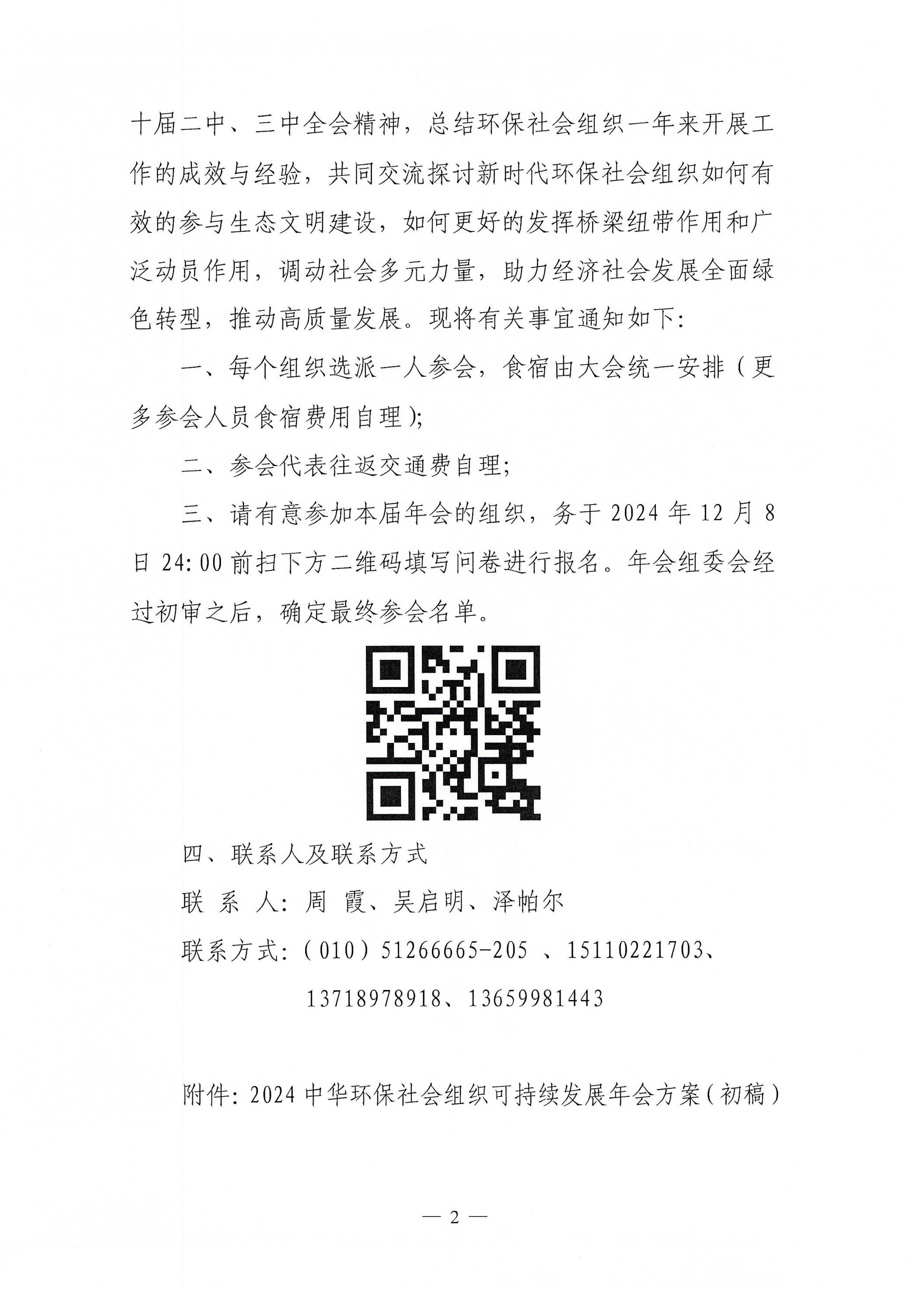 关于邀请参加“2024中华环保社会组织可持续发展年会”的通知