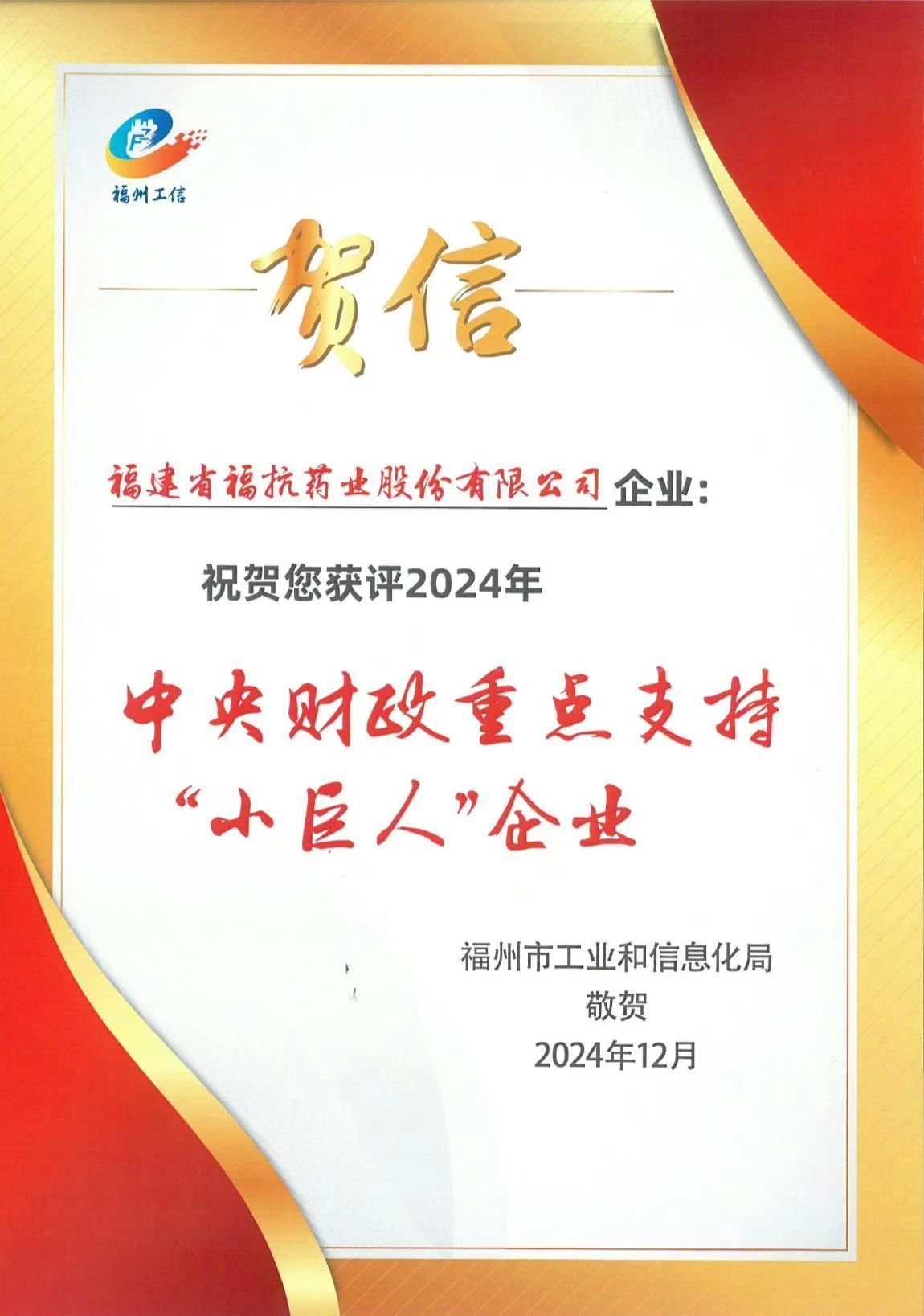 这封贺信不仅是对我们过去努力的肯定,更是对我们未来发展的殷切期望。我司始终秉持着“专精特新”的发展理念,致力于药品研发与创新,不断提升产品质量与生产效率。此次荣获重点“小巨人”企业的称号,是对我司专业性、创新性及市场竞争力的高度认可。